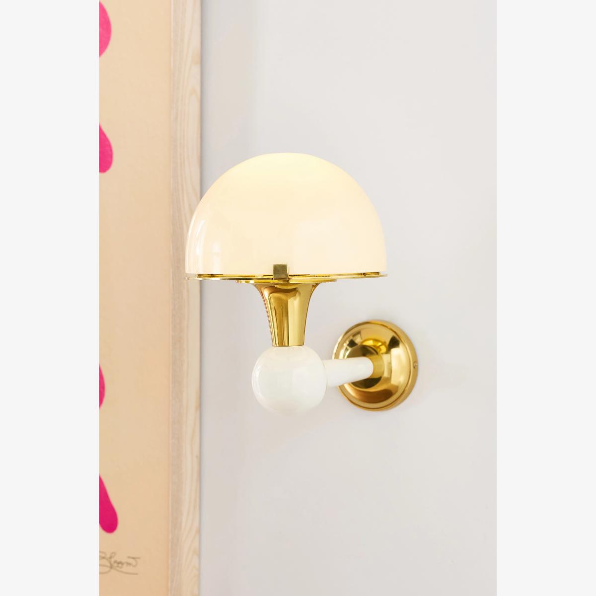 Modern and classic at once, this wall light features a charming mushroom-shaped glass shade, perfect for living rooms, entryways, and more. * Glass wall light with metal base * Hardwired; professional installation recommended * Cannot be installed with a dimmer * Cannot be installed on a sloped ceiling * Includes mounting plate * One light socket * 40 watt max * We recommend using E-26 / Type A bulbs * UL listed * Imported