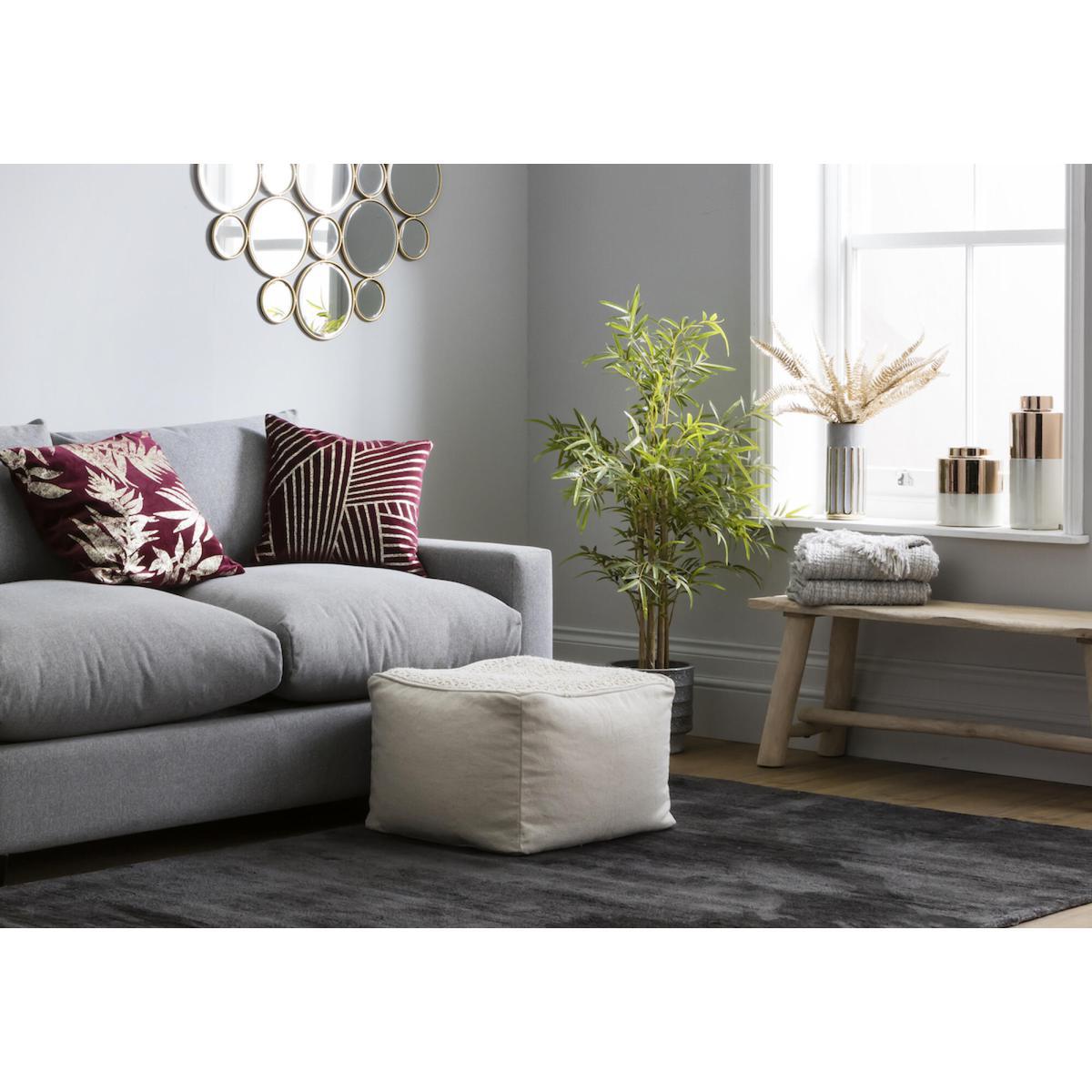 The Mervis natural patterned pouffe is a versatile piece that adds both texture and function to a variety of interiors. I love its understated design and neutral tones, making it easy to integrate into modern, Scandi, or even boho spaces. It works well as a footstool, additional seating, or even a side table when topped with a tray. To style it effectively, consider pairing it with textiles that pick up its earthy tones, or contrasting it with bold colours or patterns for a more eclectic look. Its compact size makes it ideal for cosy corners or open-plan living areas, where it can serve multiple purposes while maintaining a clean, understated aesthetic.