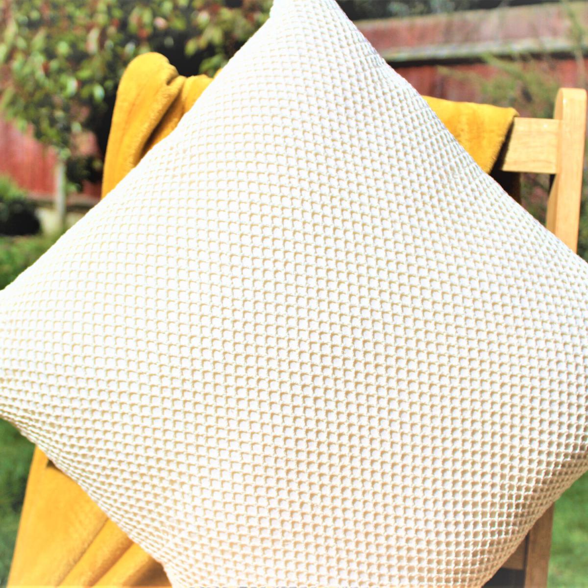 This cushion cover is perfect for bringing a pop of colour and texture to any room. This cushion cover is different in design due to a cotton mesh wrapped around the fabric to suit any decor and is completed with a secure zip fastening to safely house your chosen filling. Perfect for layering with other colours and textures to create a unique look. Can be used on the sofa and bed.