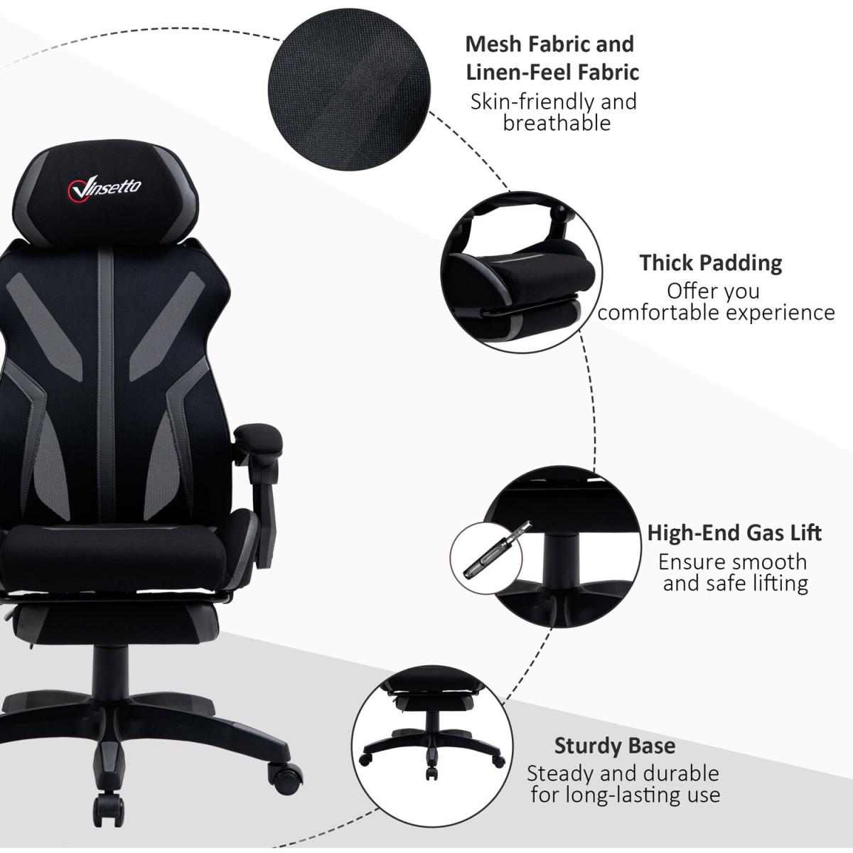 Mesh Office Chair Desk Swivel Task Recliner with Footrest, Lumbar Support - Black