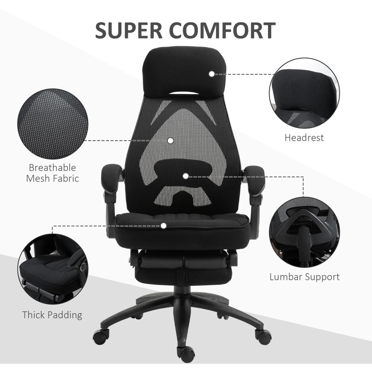 Mesh Office Chair Swivel Desk Chair with Adjustable Height Footrest - Black