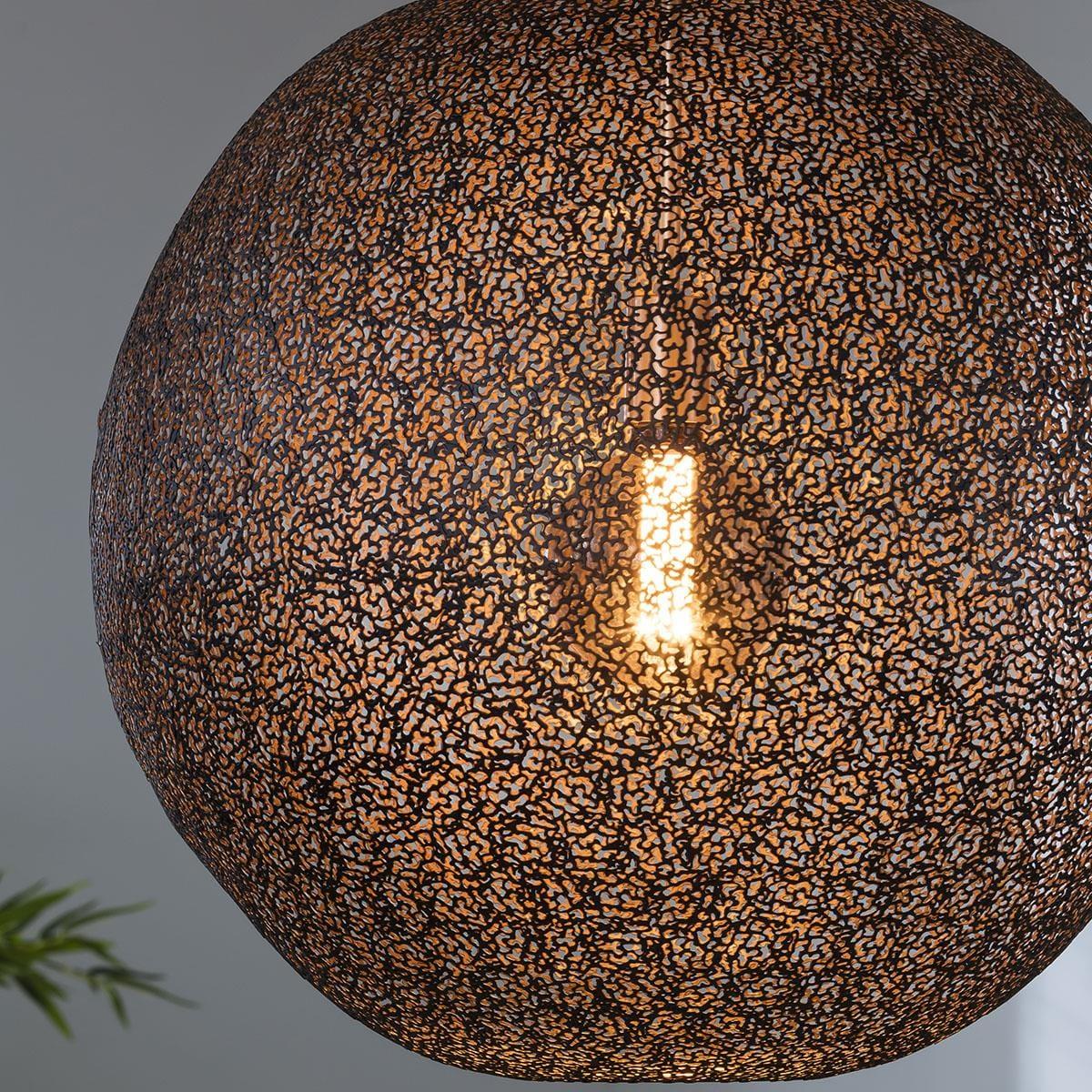 Add some glamour to your lighting set-up with this pendant light fitting, which features an intricate mesh pattern that provides a playful light distribution through the holes in the black metal shade. The Lex mesh ball light shade is a real eye-catcher for your home - the high gloss black finish adds to the shade's indulgent appeal. It is made from steel to last you through the years. Want to determine the perfect atmosphere yourself? You can dim this lamp with the smart LED bulbs that are included. The bulbs have 3 light levels that you set at the flick of a switch. If you need more information about this product, use the Live Chat service to speak to the team or send us a message. Spread the cost our with interest-free finance options. Minimum spend applies. W58cm D58cm H150cm 58cm Metal Sphere Pendant Light Fitting Hangs 150cm
