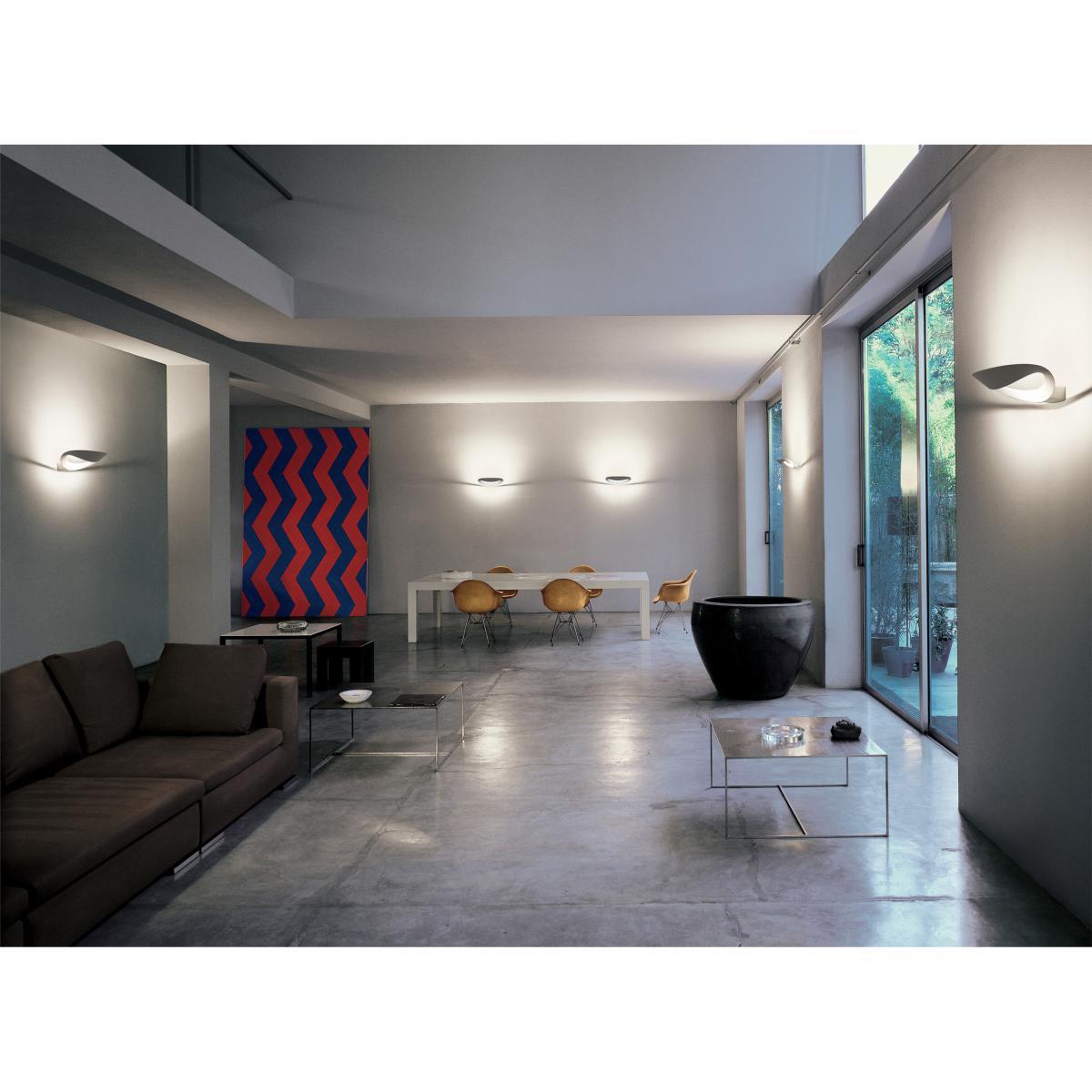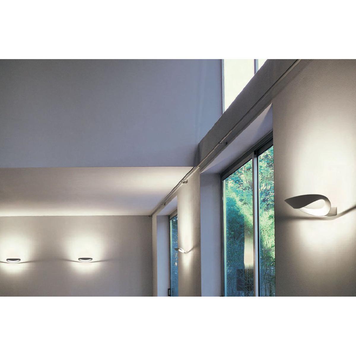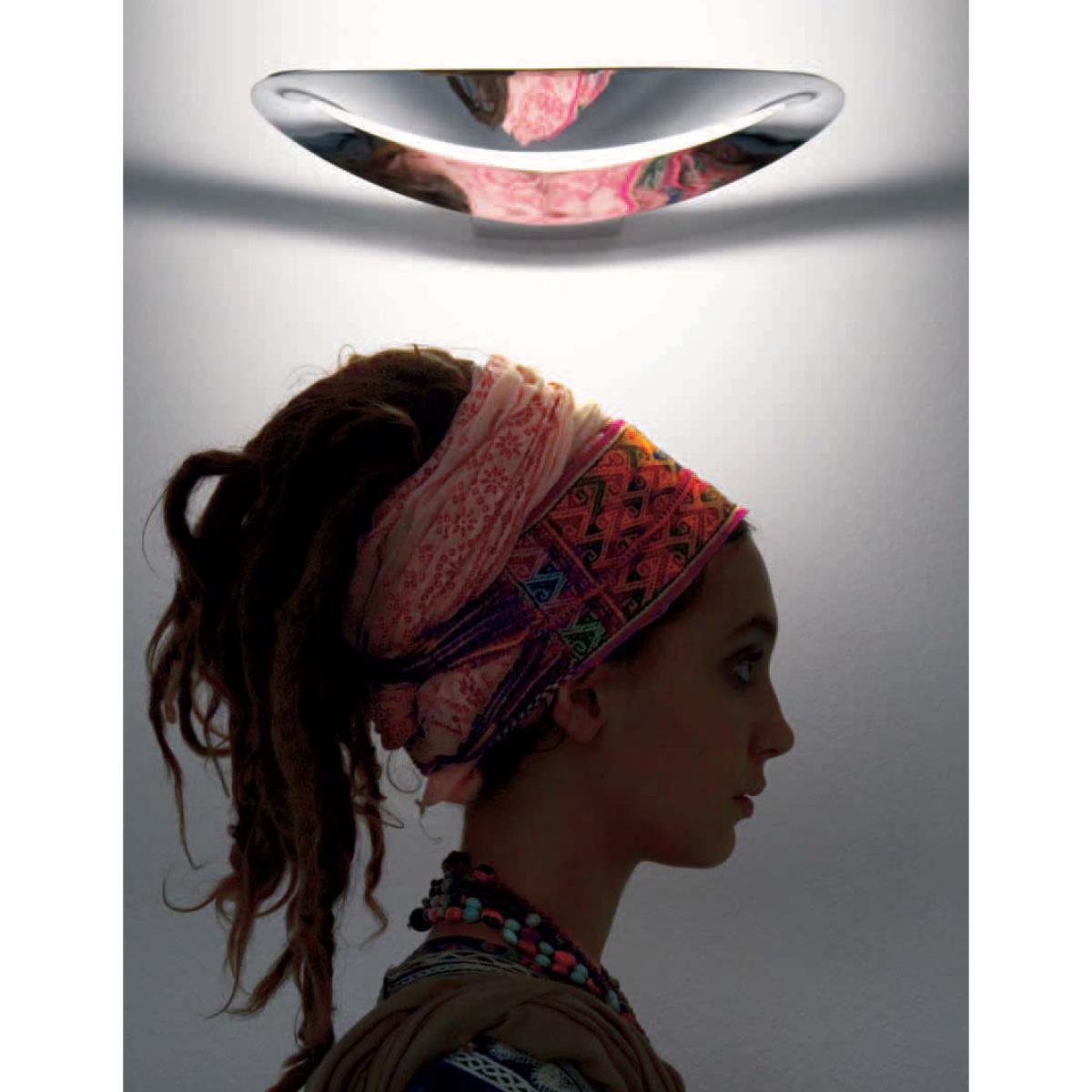 A beautiful wall light that spreads indirect, pleasant light in a truly original way. Its sinuous form envelopes and hides the halogen source, and produces a beam of soft light on the top. Mesmeri features a die-cast aluminium structure and is available in white, silver or chrome lacquered finish.