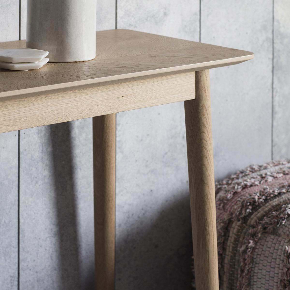 The stunning Milano Console Table features a beautiful inlay chevron design, and is made using European oak and rustic oak structured veneers which show the natural beauty of the oak grain and knots. Finished in a specialist mat lacquer, which keeps the timber looking natural and dry, with brushed out grain, the table is tactile to touch and looks amazing. The console table looks great with the Milano mirror above it.