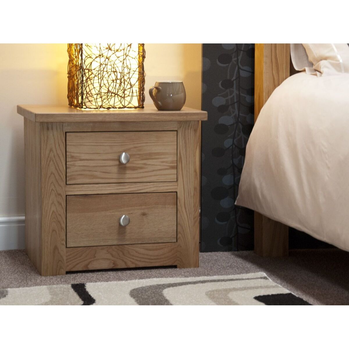 The Messina Oak Two Drawer Bedside Chest complements any bedroom suite perfectly. The slim design makes this bedside cabinet the perfect choice if you need to save space, whilst the two drawers still offer storage space for all your bedtime needs. The Messina Oak Two Drawer Bedside Chest has been carefully crafted from naturally strong solid oak and made to an exceptionally high standard. The Messina chest is an elegantly simple, refined piece of furniture that is complete with a clear lacquered finish that highlights and protects the oak. * PLEASE NOTE this item is supplied with Metal handles. Please contact us once your order is placed to purchase Oak Handles. Further Items in the Collection: Messina Oak King Size Bed, Messina Oak Wellington Chest, Messina Bedside Cabinets and Messina Oak Dressing Table and Stool, Messina Oak Single Wardrobe.