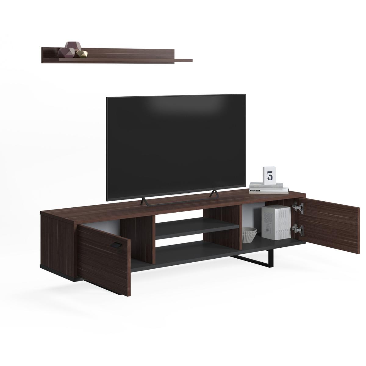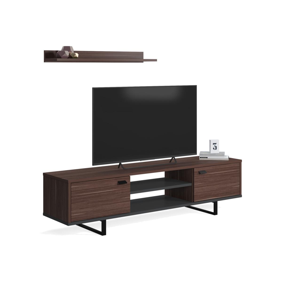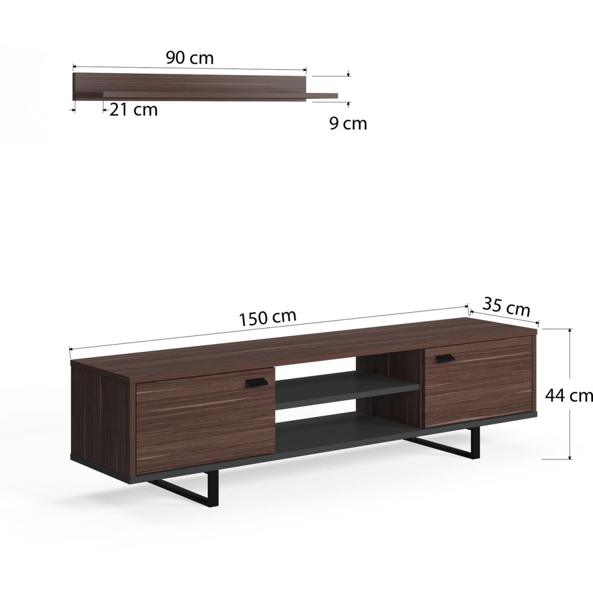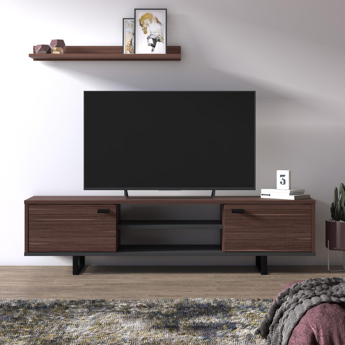 Ruumstore Meta TV Stand 59'' width, with 2 Door and 2 Shelves a stylish TV stand for media consoles. It is so easy to assemble with its detailed descriptions just in a few time. A simple and useful model for those who are not surprised by the appearance of a classic TV unit. With this unit, which stands out with its wardrobe structure, high feet and metal body and handles on both sides, you will both add pleasure to your TV and provide extra functionality in your living spaces with its ergonomic dimensions and storage areas. You can combine it with other Meta items. Efficient storage for small spaces Characterized by a clean-lined, rectangular shape,with two cabinets and shelves. It is a stylish and modern combination of wood and metal. Its tall legs facilitates the cleaning and provides a refined look to interiors. Customer assembly required Our products have been shrinked on both sides as internally and externally to prevent the damages. All the packages have been quality tested. Accessories in the product images are for decoration purposes and are not included in the price.