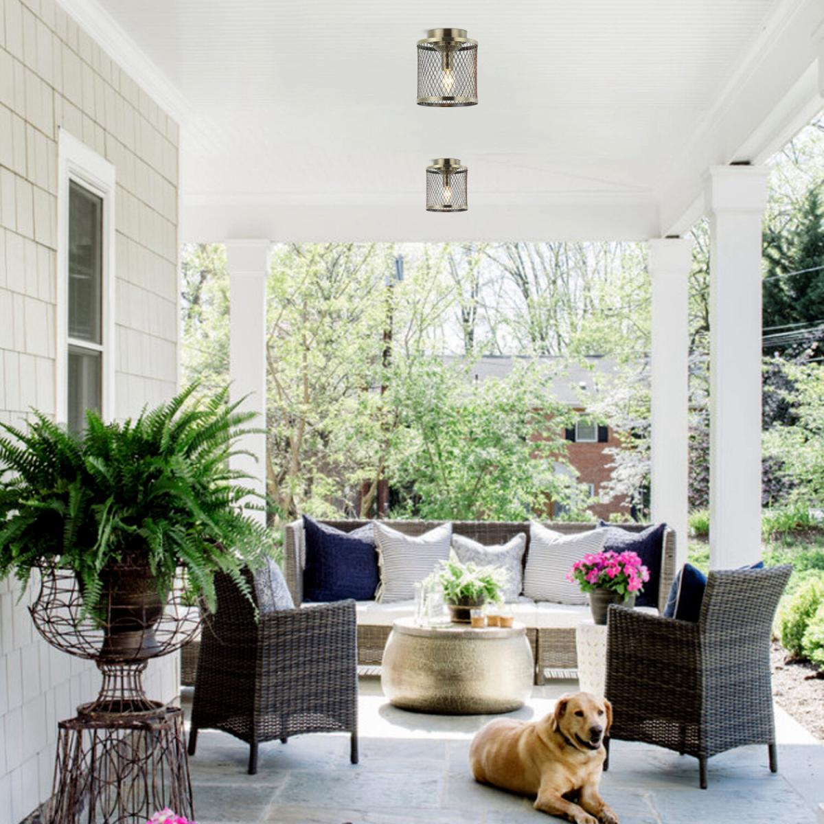 A charming mesh shade distinguishes this 1-light ceiling light. Install this mini flush mount in a group of 3 or 4 in the hallway to bring an industrial-style brightness to your home. It also suits a small nook or other space, such as the reading room, dining room, living room, and bedroom.