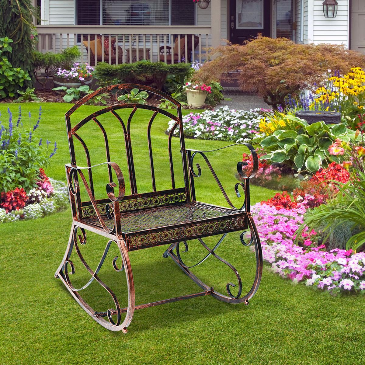 Metal 1 Seater Garden Rocking Chair - Bronze Red