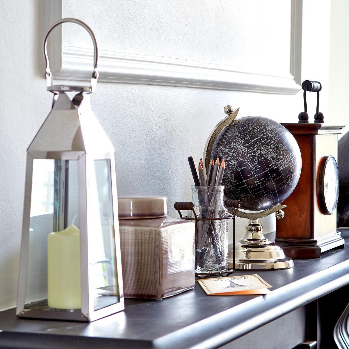 I love this little lantern because of its versatile, sleek look that easily complements both modern and transitional spaces. Its metallic silver finish adds a touch of contemporary elegance, making it perfect for styling on side tables, mantelpieces or as a centrepiece on a dining table. It works particularly well in interiors with a monochrome or cool colour palette, but can also lift warmer schemes when paired with metallic accents or candles. Practical tips include placing a real or LED candle inside for a cosy glow, and combining it with textured accessories or greenery for a layered, curated look. It’s a simple, yet stylish addition that can effortlessly elevate your interior’s ambience.