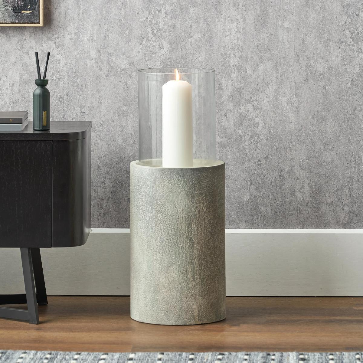 * Impactful decor piece * Large sizes * Choice of finishes * Holds pillar candle (not included) Make an impactful style statement with this impressive Pedestal Hurricane Candle Holder. Its generous proportions and option of antique brass or stone finishes means that this will add a real focal point to your space, whatever your style. Available in a choice of sizes to suit your interior.