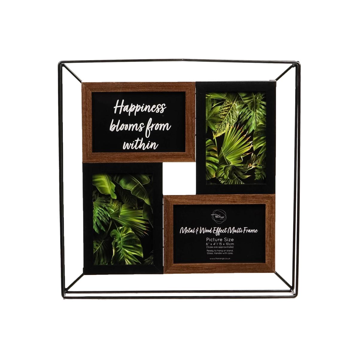 A modern, industrially inspired design, this Metal and Wood Effect Multi Frame is sure to add style to your space. Finished with a metal frame and wood effect elements, this frame has space for four of your favourite memories and is easy to coordinate with your existing decor thanks to the wood finish.