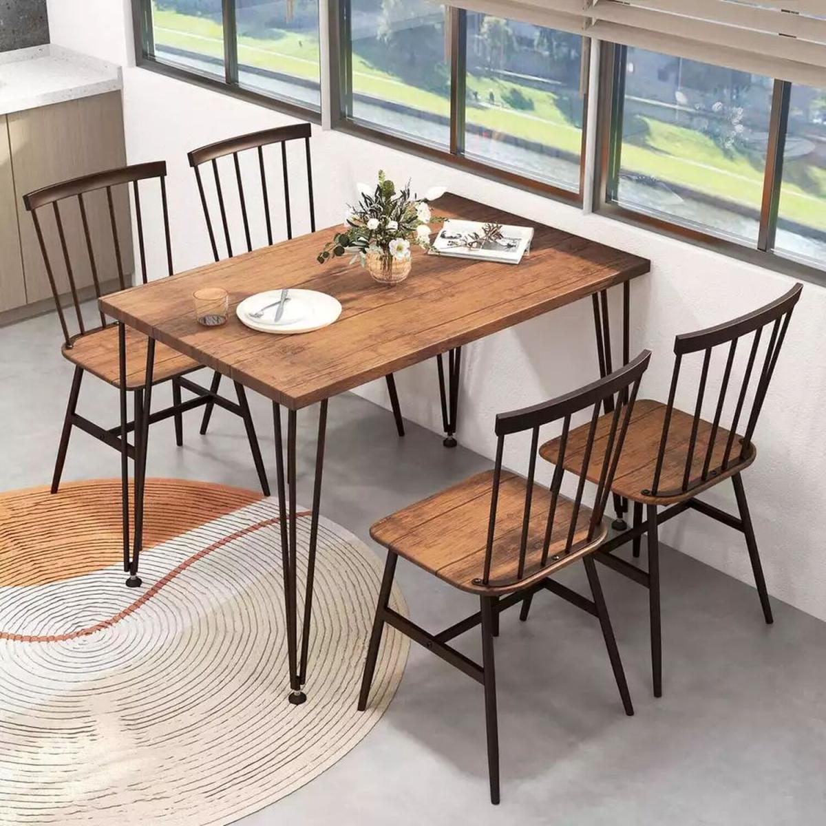 Metal and Wood Retro Dining Table with 4 Chairs - Brown and black