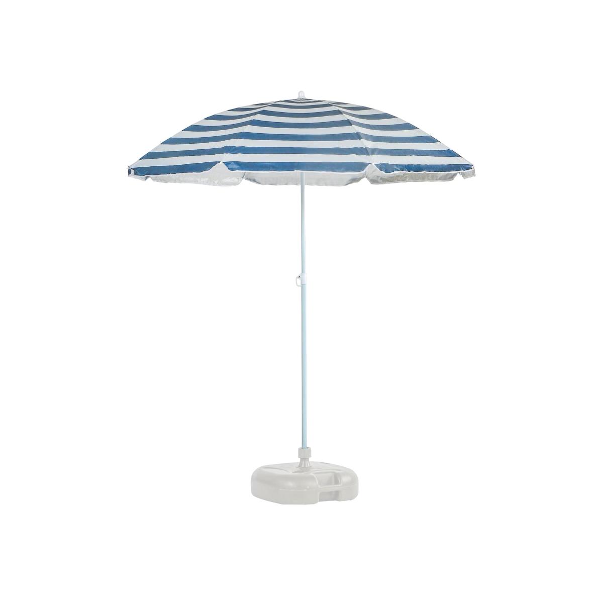 Make the most of your outdoor area by ensuring you can safely sit out for longer with our Harbour Houseware Blue Striped Parasol and Base Set, pretty and practical!This lightweight Parasol consists of a polyester canvas, with a UV coating and a steel powder-coated frame and pole, producing an incredibly robust and durable product which was made to protect against the harmful rays of the sun and contend with the rigours of the outdoor elements. Simply push the red button, extend the pole, then click into place and you have a parasol ready to keep you cool, calm and collected! The blue stripe offers up a totally nautical touch, great for your garden or take it to the beach for the ultimate seaside excursion! br Each parasol also comes with a weight base which is produced from 100 recycled plastic, ideal if youre trying to do your bit as a conscious consumer and are also looking for something sturdy and stable for those long summer days. Easily refillable with sand, water or any other weighted element of choice, these Parasol Bases are available in three colours - choose between classic beer garden green, neutral white or cool grey to create your ultimate summer garden setup!