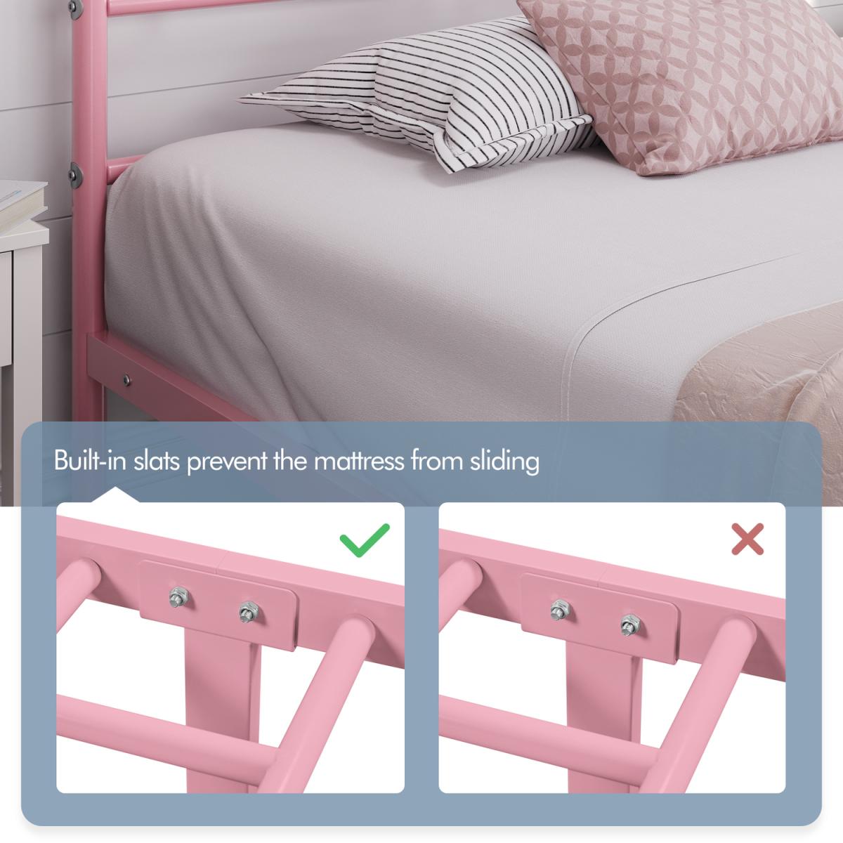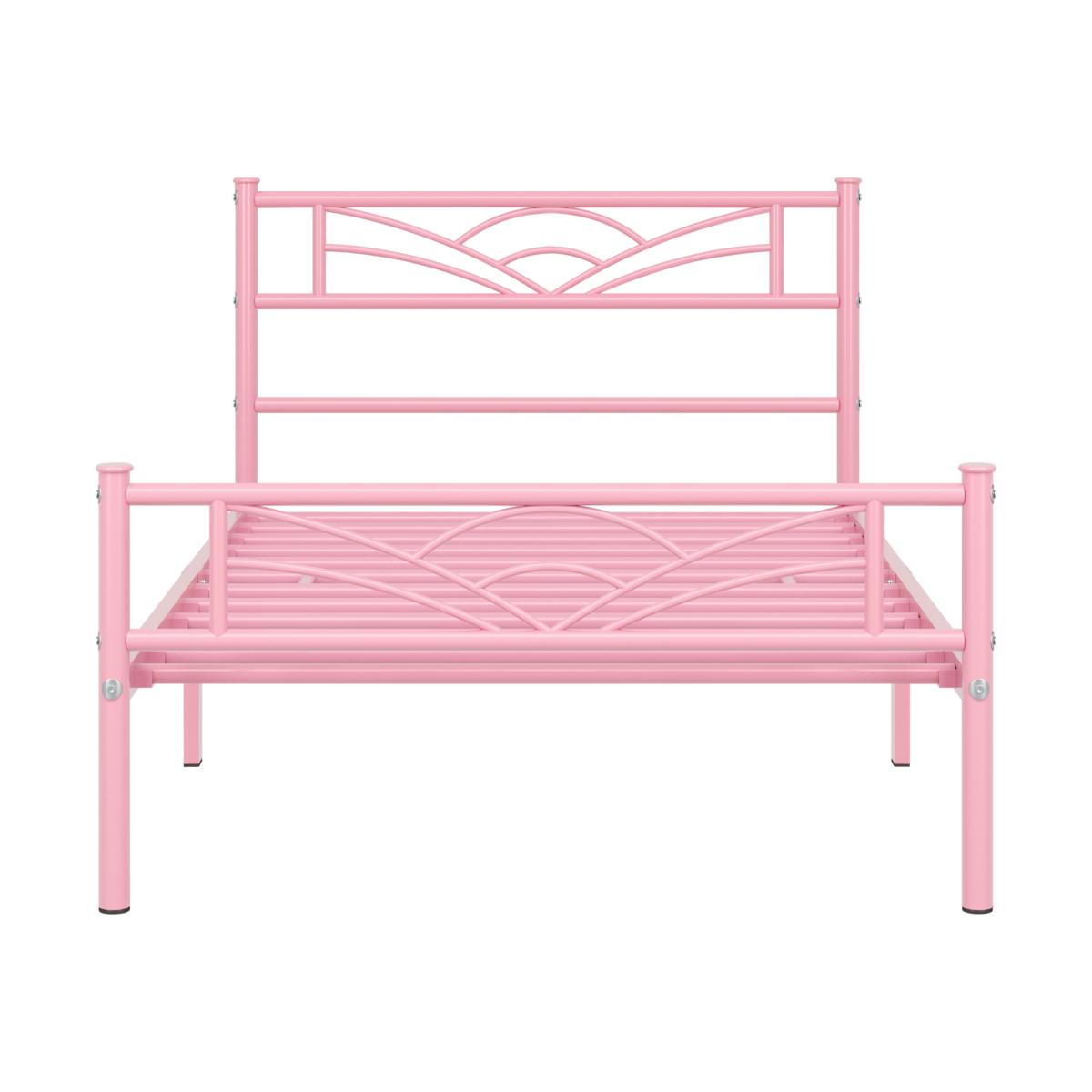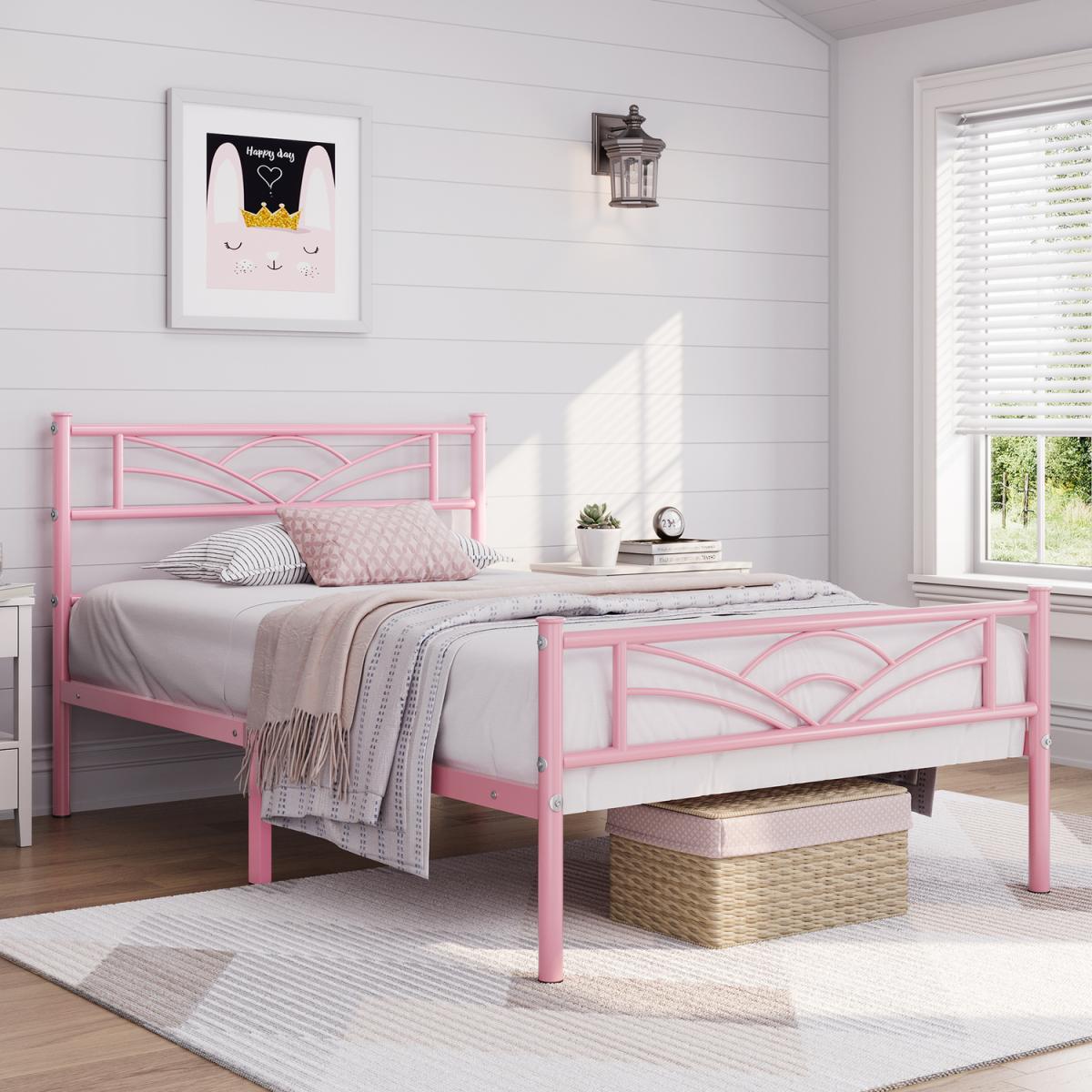 Refresh your bedroom or spare room with this elegant metal platform bed with a headboard and footboard. Minimalist but graceful, this metal bed is defined by its clean-lined silhouette and cloud-inspired headboard, adding a touch of elegance and freshness to your home. Constructed of a solid and durable metal framework, this bed frame features multiple strong support legs that provide optimal stability for any type of latex, memory foam or spring mattress without a clumpy box spring. Thoughtful details like additional corner braces and non-slip foot caps all work together to provide you with a noise-free night's sleep. Additionally, the platform bed frame creates valuable under-the-bed space for storing your luggage, shoes, bags, and other odds ends, keeping your bedroom organized and clutter-free.