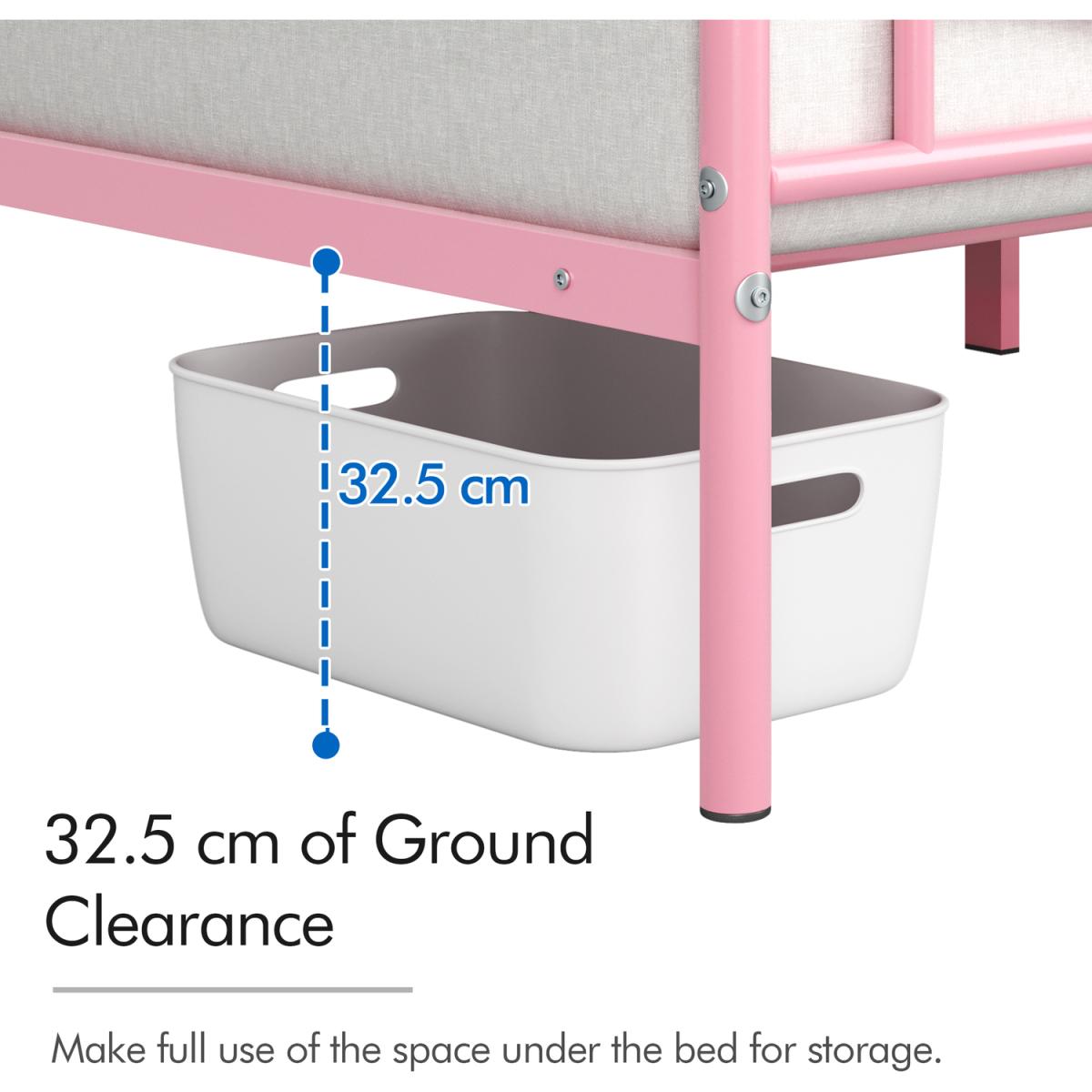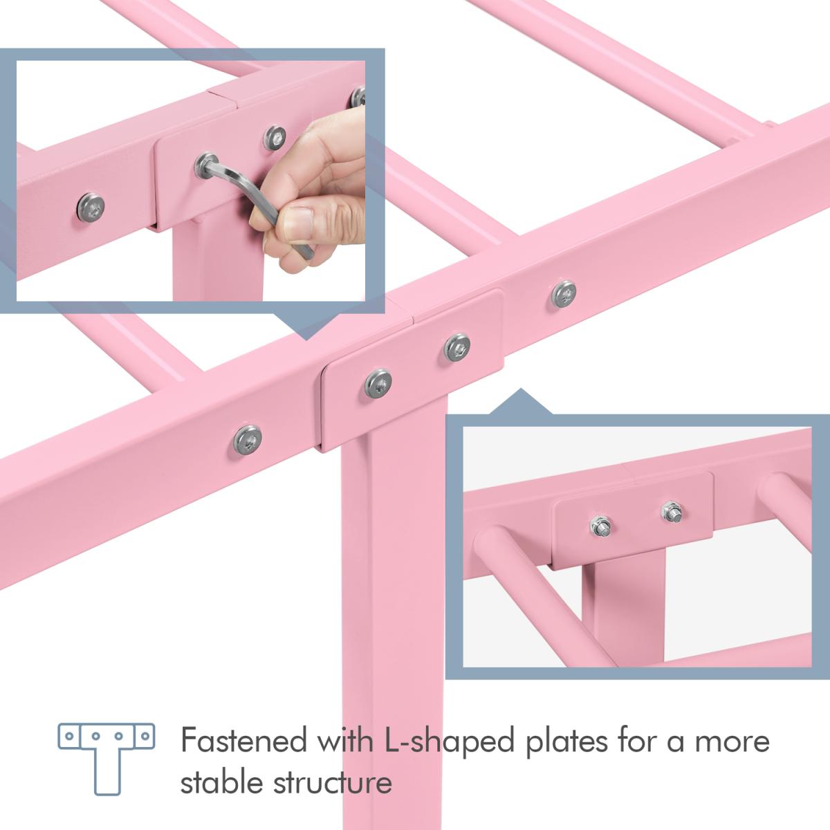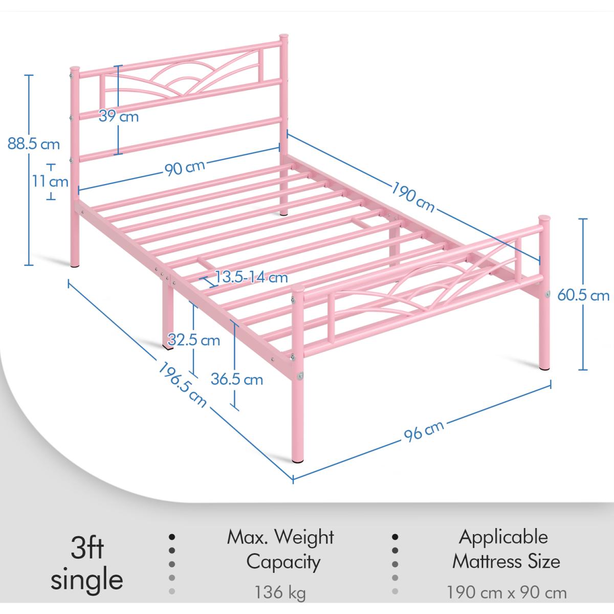 Refresh your bedroom or spare room with this elegant metal platform bed with a headboard and footboard. Minimalist but graceful, this metal bed is defined by its clean-lined silhouette and cloud-inspired headboard, adding a touch of elegance and freshness to your home. Constructed of a solid and durable metal framework, this bed frame features multiple strong support legs that provide optimal stability for any type of latex, memory foam or spring mattress without a clumpy box spring. Thoughtful details like additional corner braces and non-slip foot caps all work together to provide you with a noise-free night's sleep. Additionally, the platform bed frame creates valuable under-the-bed space for storing your luggage, shoes, bags, and other odds ends, keeping your bedroom organized and clutter-free.