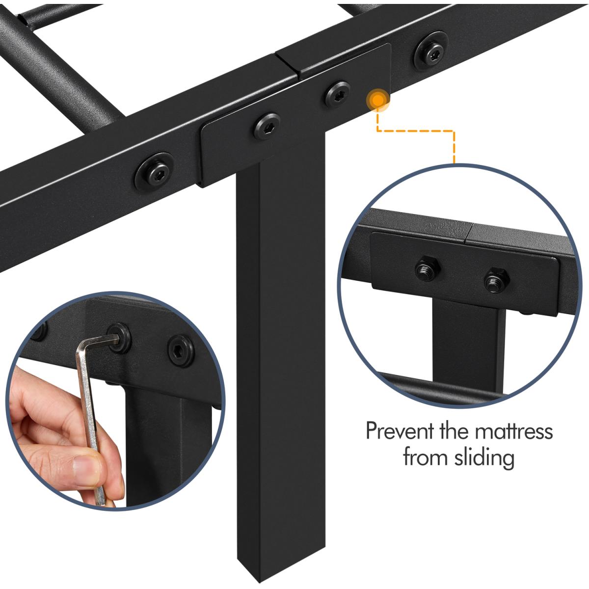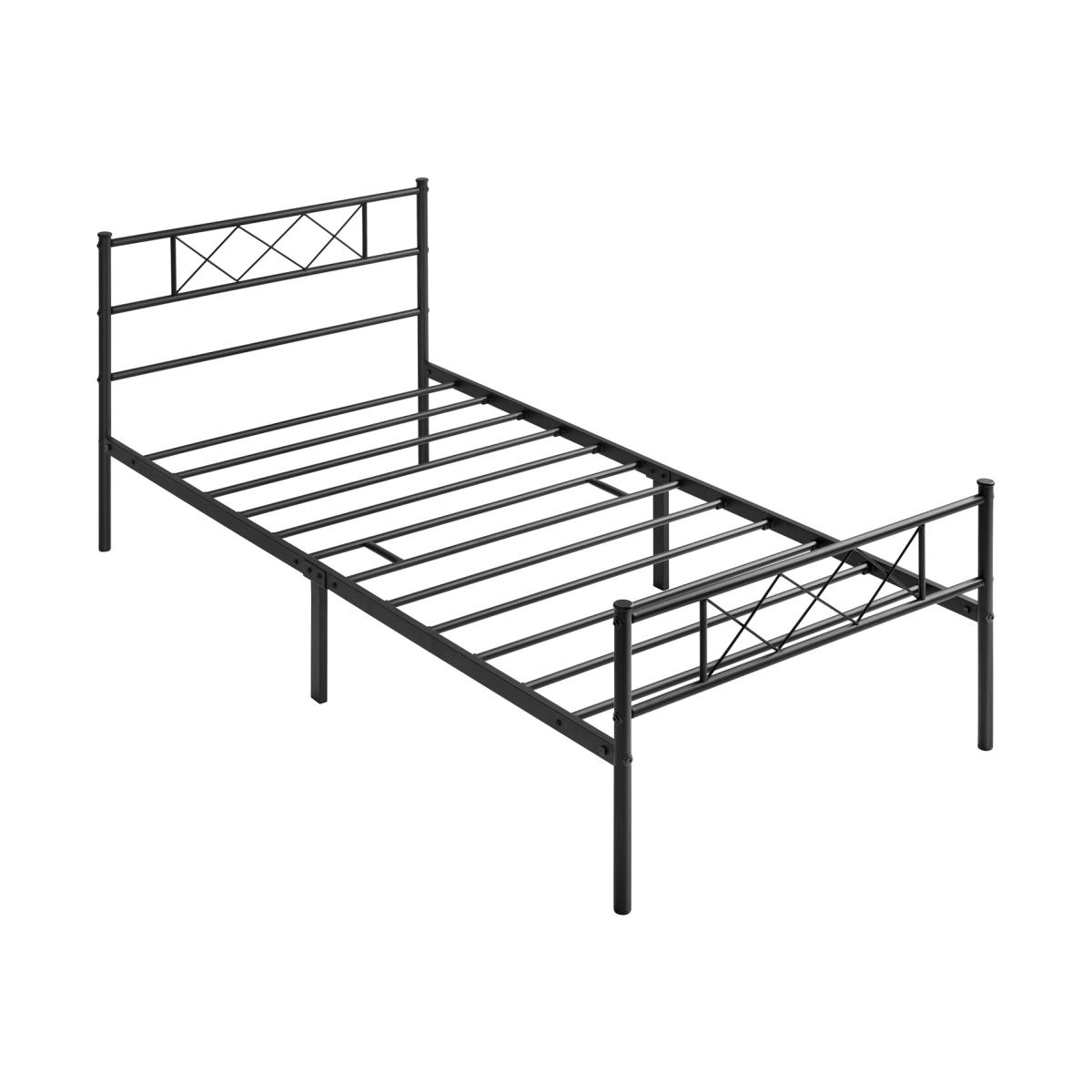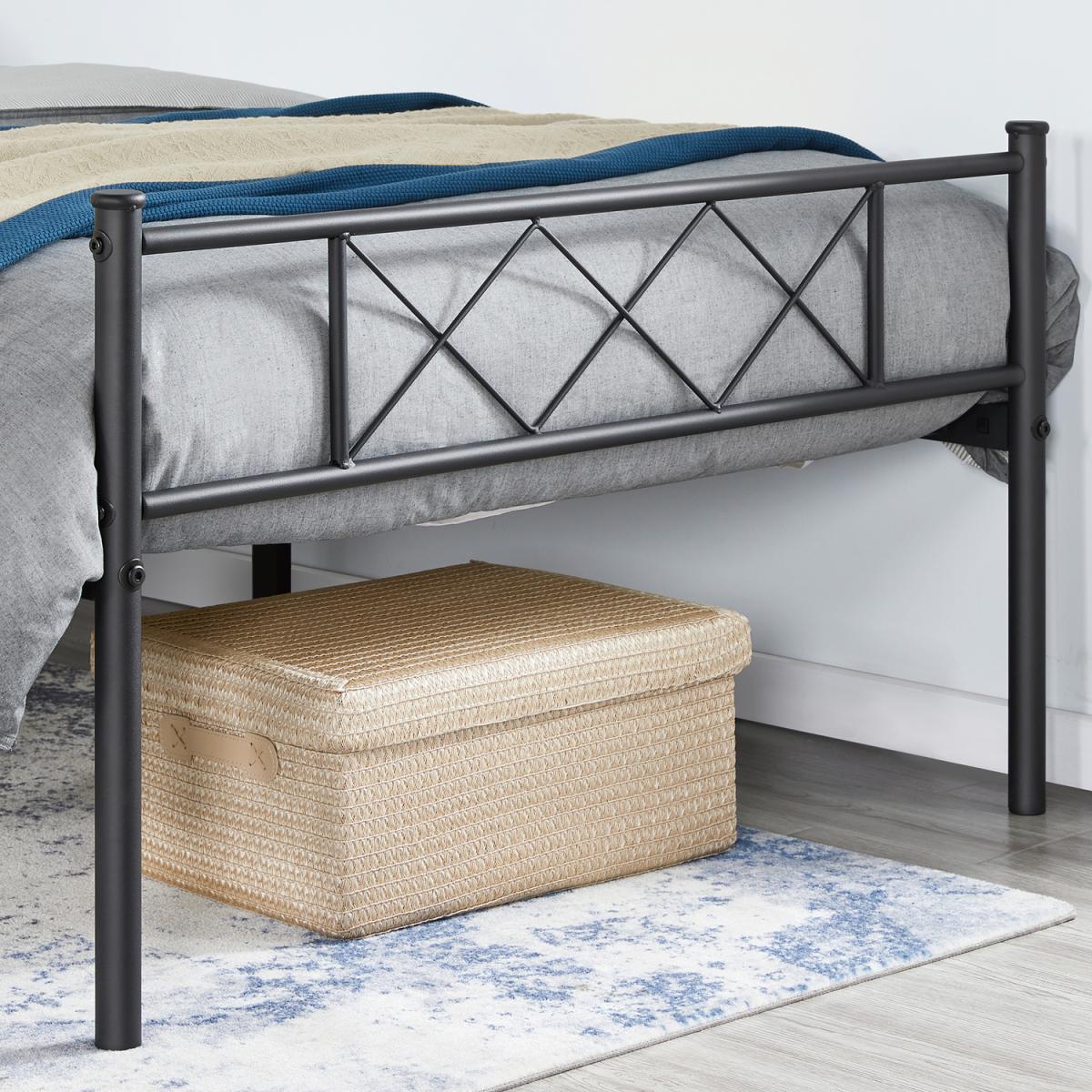Update your bedroom with a cross-design metal bed frame for an industrial look. The head and foot end respectively showcases a row of x-shaped iron bars, which defines the aesthetic taste of the bed frame. Crafted of metal slats, side rails center rails, and support legs, our metal bed frame is sturdy enough for a good night's sleep without the need for a bulky box spring. A well-painted surface resists scratch and oxidation and is easy to maintain. With 32.5cm of clearance under the bed, there is plenty of space for storage boxes and baskets. Plus, the headboard offers a perfect place for you to lean back and relax by plumping up your pillows. Ideal for bedrooms, guest rooms, dormitories, apartments, and more.