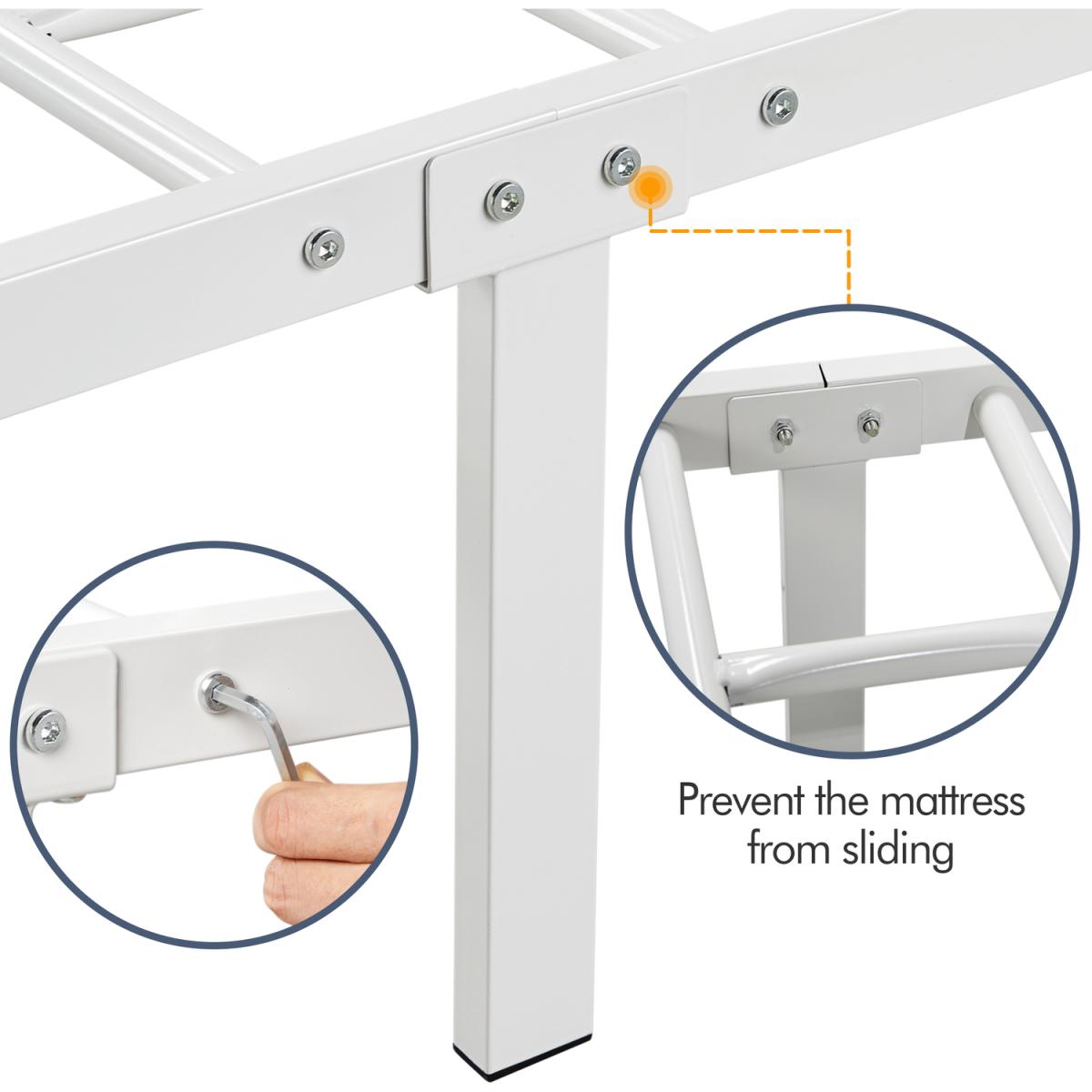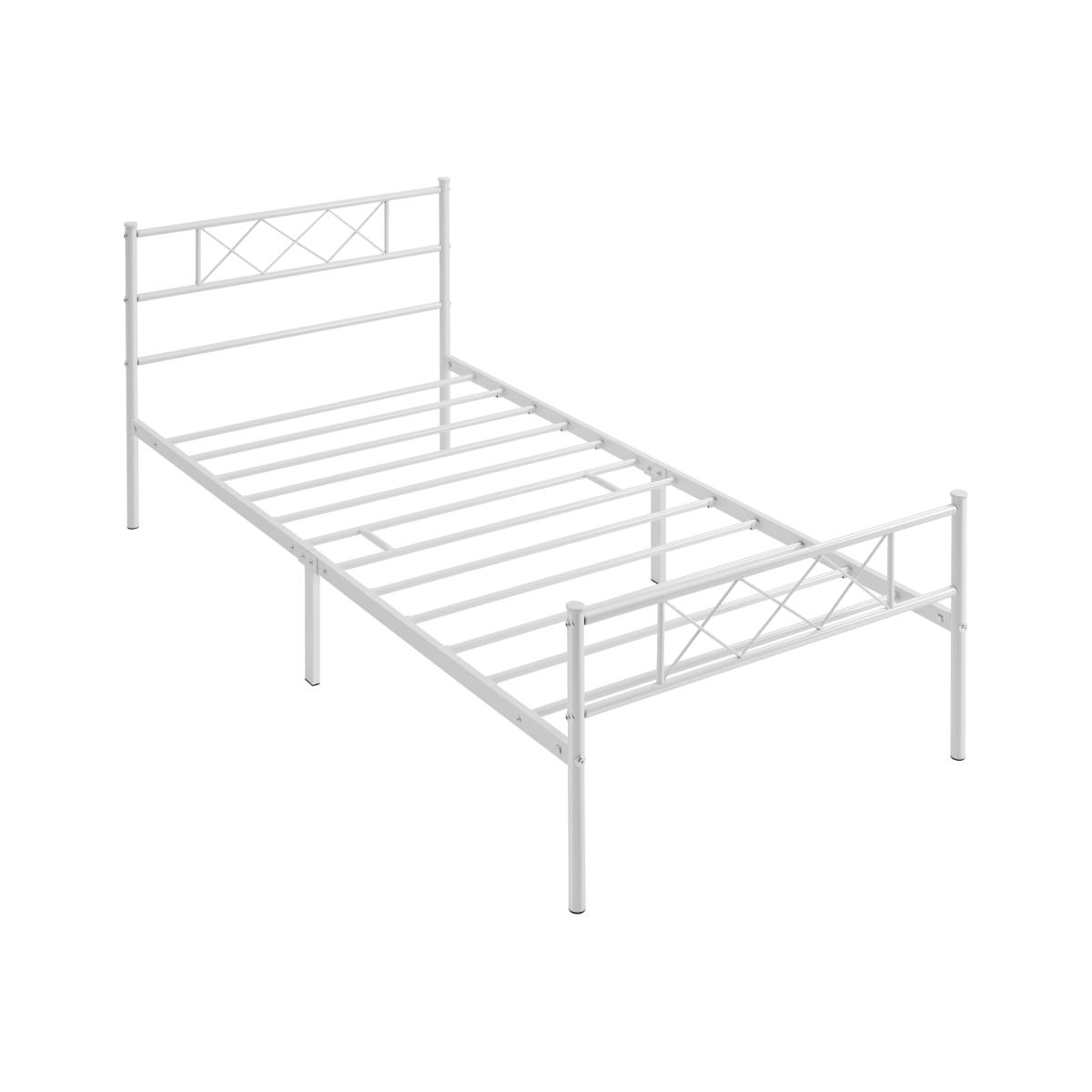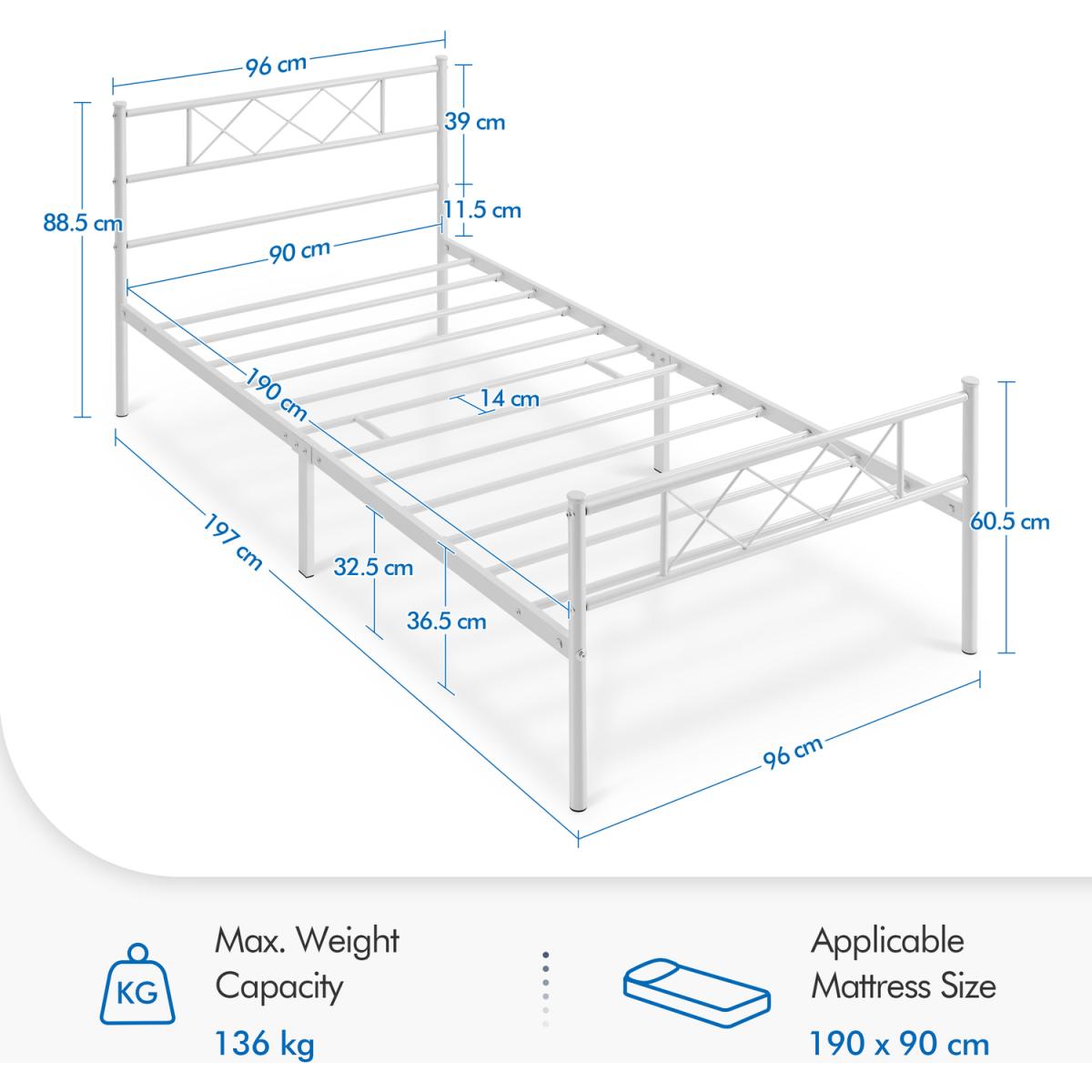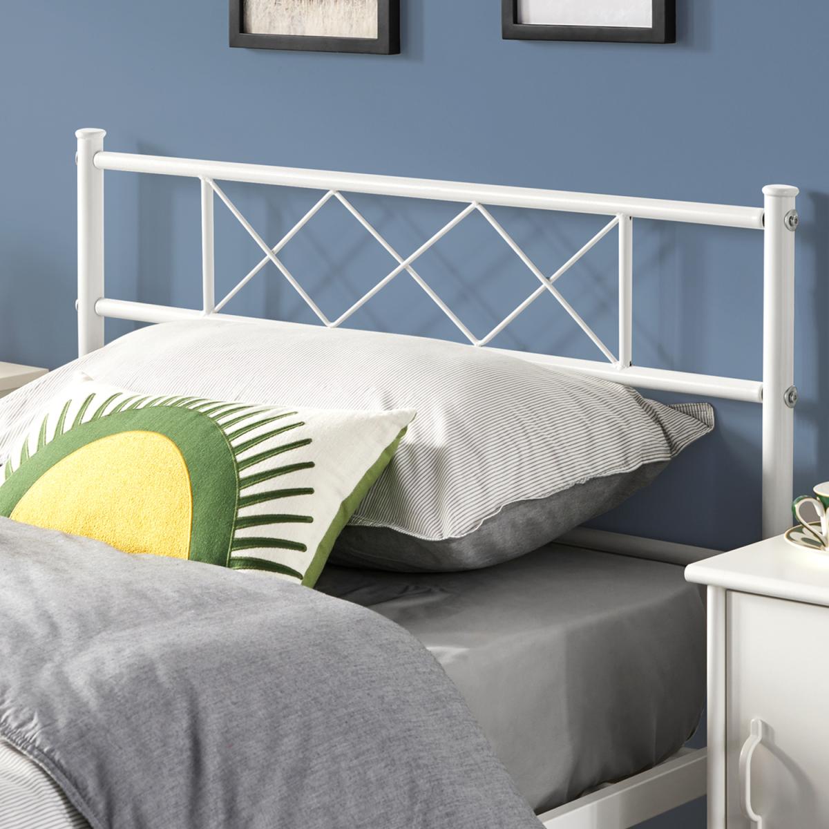 Update your bedroom with a cross-design metal bed frame for an industrial look. The head and foot end respectively showcases a row of x-shaped iron bars, which defines the aesthetic taste of the bed frame. Crafted of metal slats, side rails center rails, and support legs, our metal bed frame is sturdy enough for a good night's sleep without the need for a bulky box spring. A well-painted surface resists scratch and oxidation and is easy to maintain. With 32.5cm of clearance under the bed, there is plenty of space for storage boxes and baskets. Plus, the headboard offers a perfect place for you to lean back and relax by plumping up your pillows. Ideal for bedrooms, guest rooms, dormitories, apartments, and more.