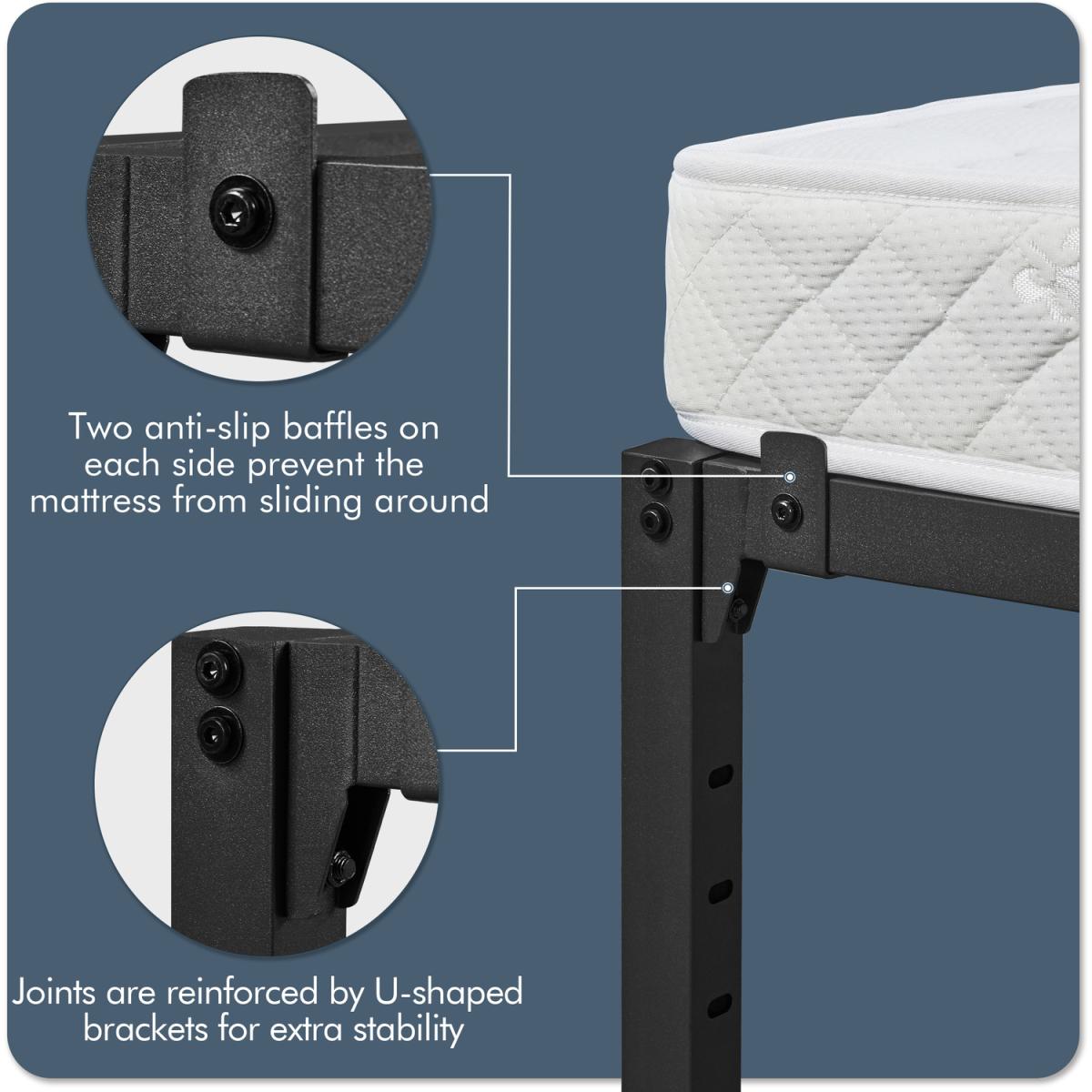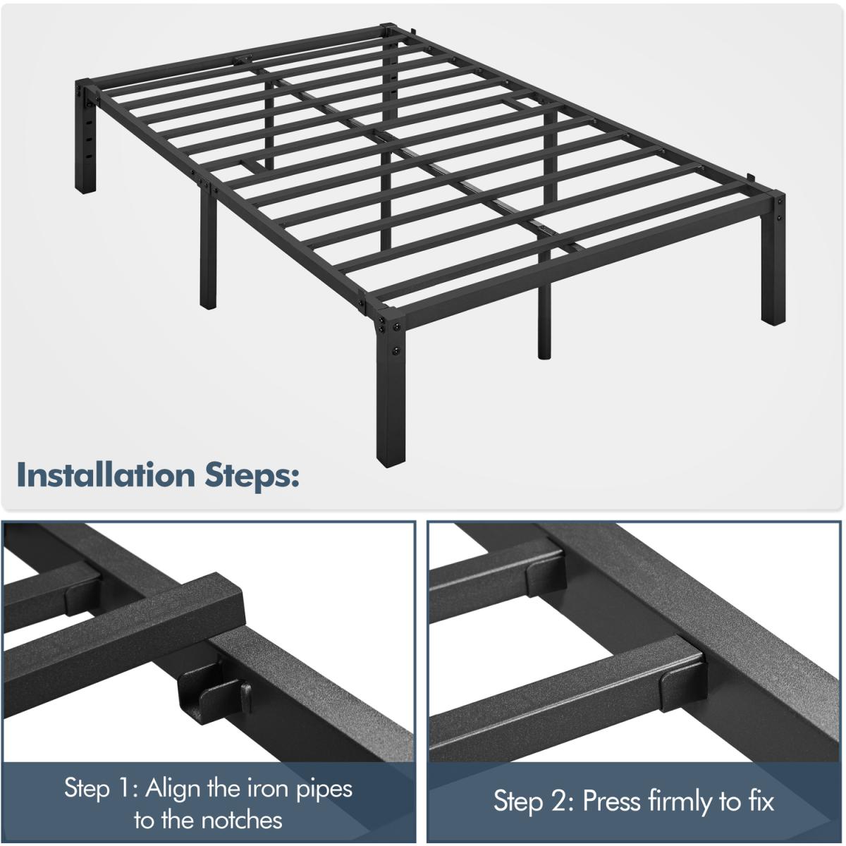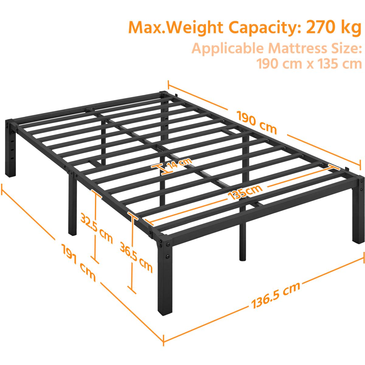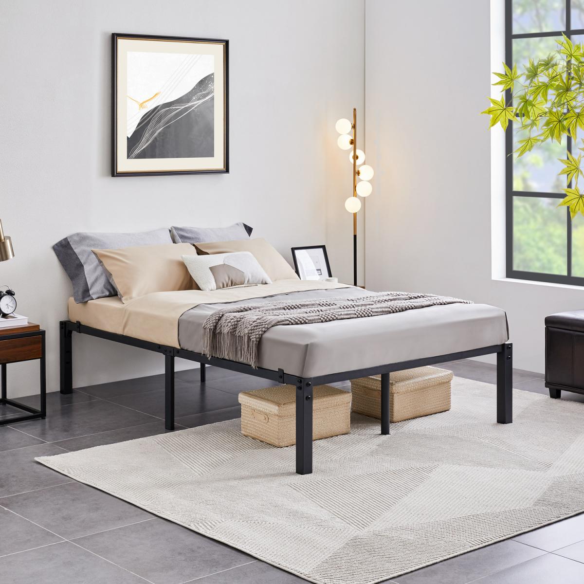 Our selected metal platform bed frame in a minimalist style can provide you with the safe and comfortable sleep you're longing for! The clean lines and the sleek finish of the bed frame can deliver a sense of simplicity and refresh to the space, giving you aesthetical pleasure. This bed frame features a metal slatted structure, providing you optimum stability for any type of mattress without a clumpy box spring. The durability of the metal bed frame also prevents mattress sagging, which benefits the long-lasting use of your mattress. The 32.5 cm ground clearance creates valuable under-bed space for storing your quilts, pillows, out-of-season clothing or other items, versatile for use. A nice addition to guest rooms, bedrooms, dormitories, flats and more.