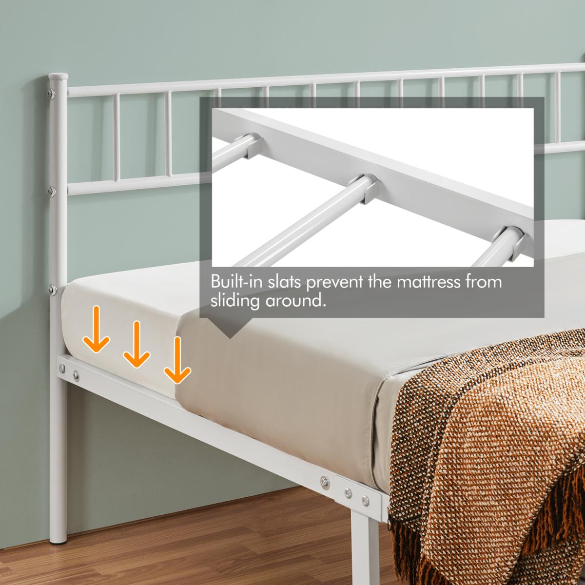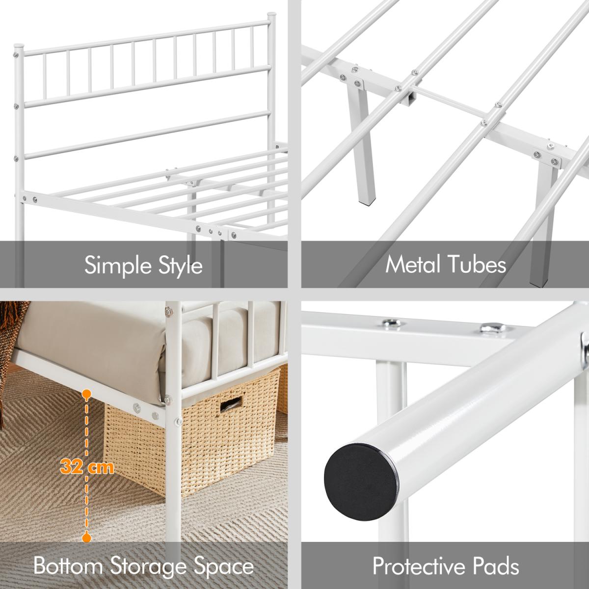 With simple lines and an open design, this 3ft single bed frame with a slatted headboard will be a good addition to your home. The metal tube base combined with a matte black finish creates a strong industrial vibe that is suitable for all traditional and contemporary decor homes. Crafted of metal slats, side rails and 6 solid legs, our single bed base is capable of holding up to 136 kg. The premium iron frame is powder coated for scratch and rust resistance. Cleaning will be a breeze, wipe clean with a soft, dry cloth. The 32cm of clearance under the bed well enlarges your bedroom storage space. It will be a good addition to bedrooms, guest rooms, spare rooms, dormitories, flats and more.