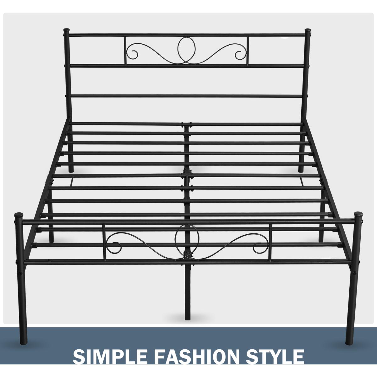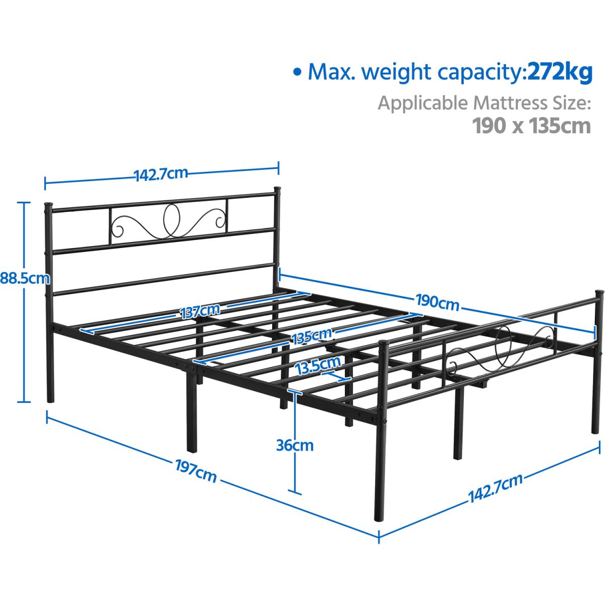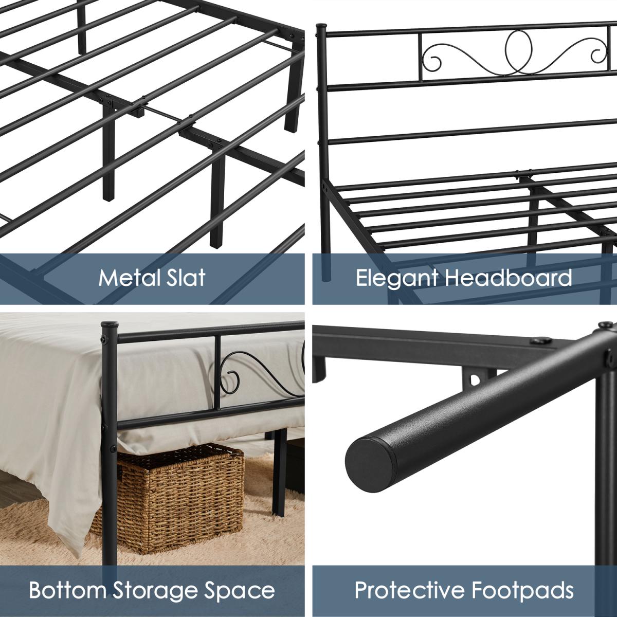 Update the look of your space with this graceful metal platform bed. This bed base features a metal slat frame in a matte finish that's both striking and elegant with an industrial vibe. The headboard and footboard feature a metal scroll design, adding beautiful decorative detail to the bed. The powder-coated iron frame is scratch and rust-resistant, ensuring a durable bed frame suitable for long-term use. The spacious room available beneath the bed provides additional storage space for boxes and cases, the perfect addition to any small bedroom in need of more storage. A good addition to the bedroom, guest room, dormitory, apartment and other small spaces.