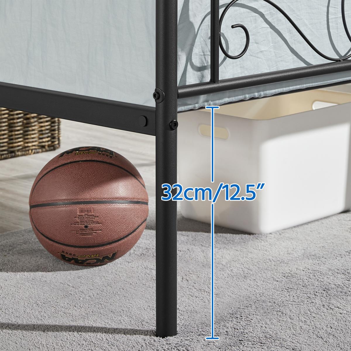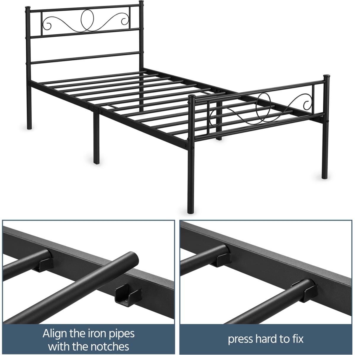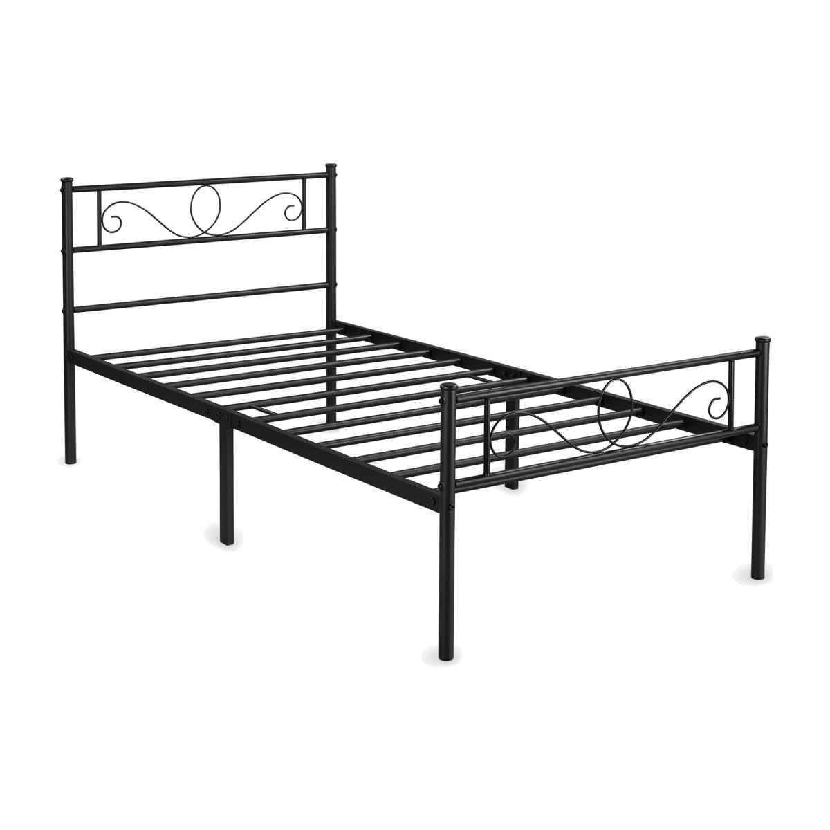 Update the look of your space with this graceful metal platform bed. This bed base features a metal slat frame in a matte finish that's both striking and elegant with an industrial vibe. The headboard and footboard feature a metal scroll design, adding beautiful decorative detail to the bed. The powder-coated iron frame is scratch and rust-resistant, ensuring a durable bed frame suitable for long-term use. The spacious room available beneath the bed provides additional storage space for boxes and cases, the perfect addition to any small bedroom in need of more storage. A good addition to the bedroom, guest room, dormitory, apartment and other small spaces.
