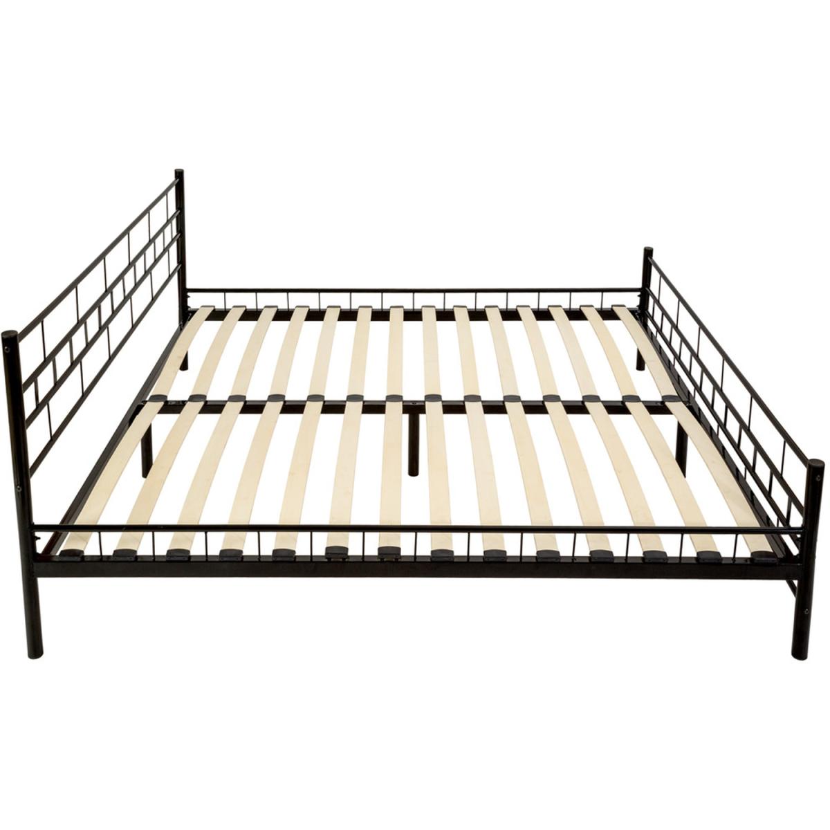 This beautiful metal bed from tectake will give you sweet dreams and a good night's sleep. The steel bed is robust, stable and fits into any bedroom design thanks to its visually appealing head- and foot- section. The integrated slatted frame of this bed is made of resilient poplar wood. The powder coating gives the bed frame an anti-static effect and is also shock- and scratch-resistant. Plastic feet are gentle on the floor. This bed is available in double and super king size. Get this stylish metal bed from tectake and ensure a restful night's sleep.