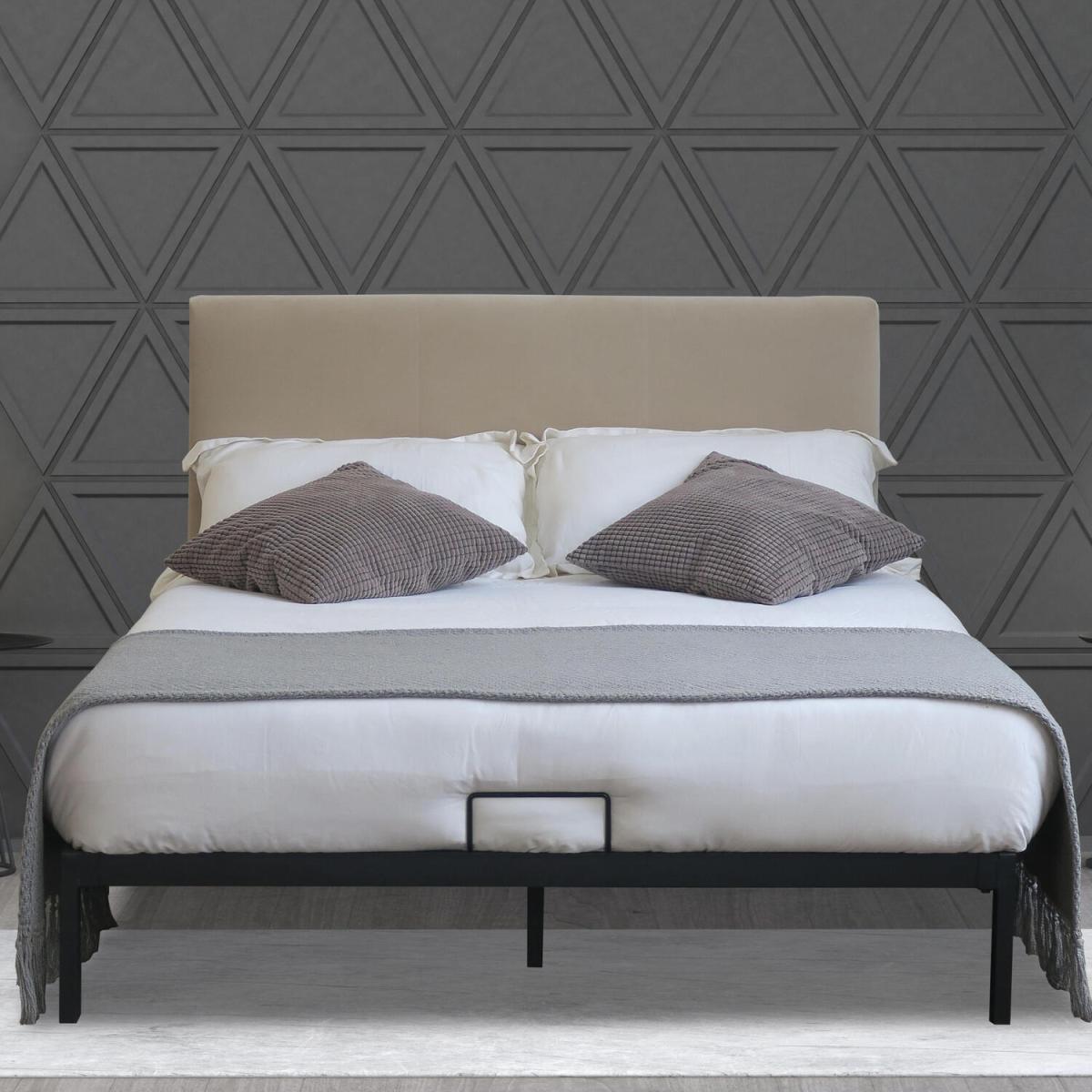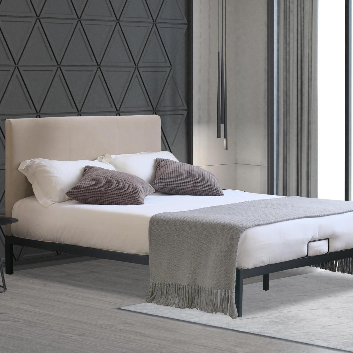 Metal Bedframe with Plush Velvet Headboard - Cream / King