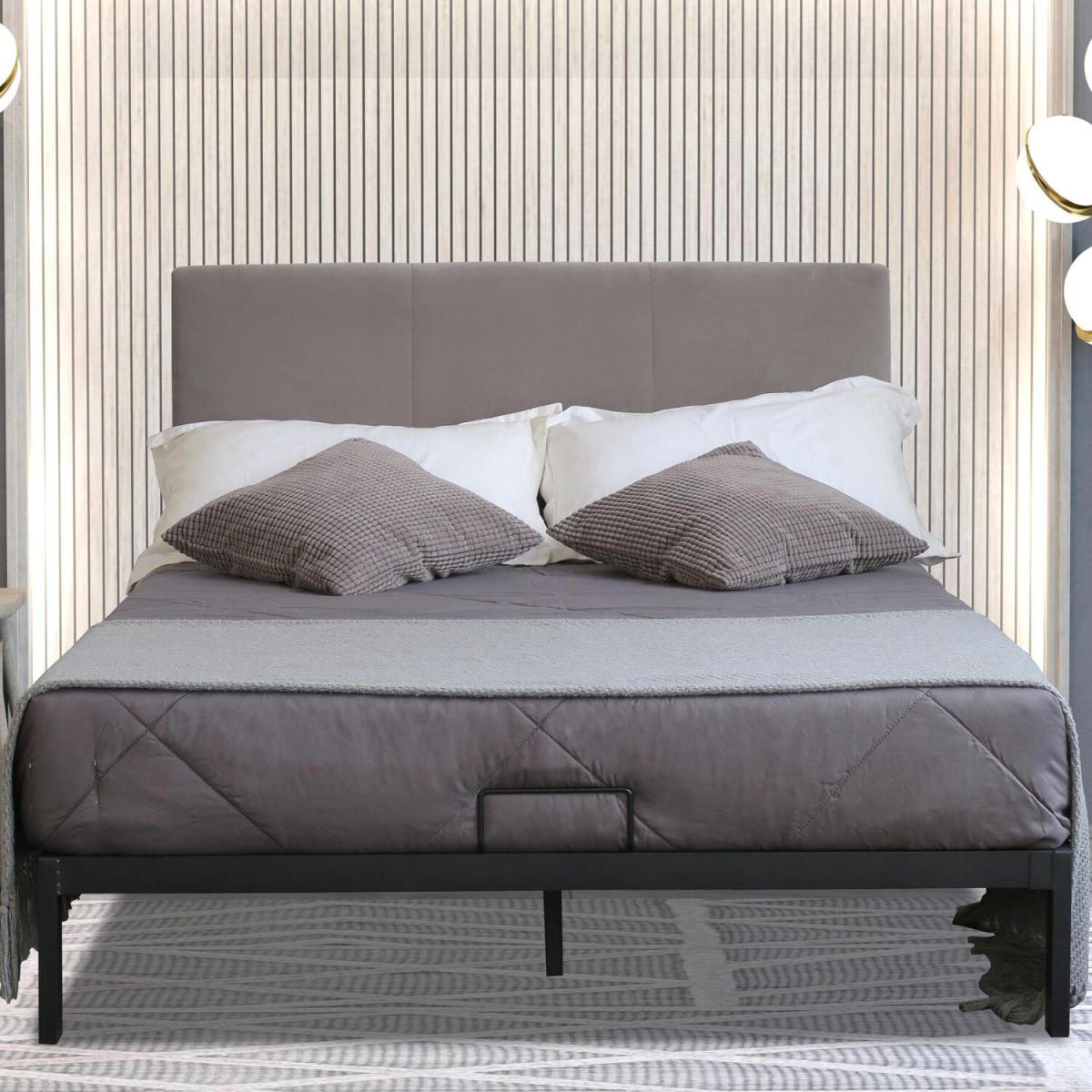 Metal Bedframe with Plush Velvet Headboard - Grey / King