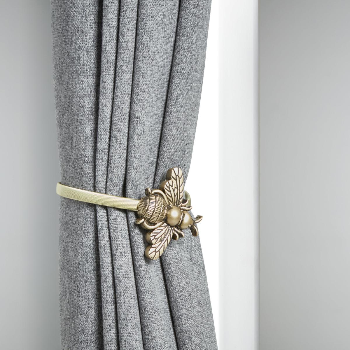 This tieback will give your curtains a real buzz! In an antique brass colourway, this tieback has a lovely bee design. A magnetic clasp helps keep the tieback around the curtain for secure storage of the panel.