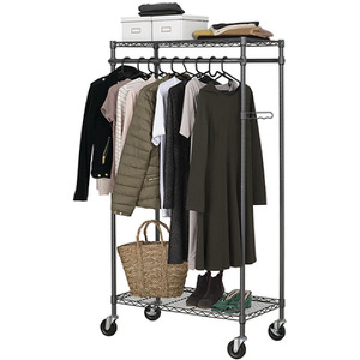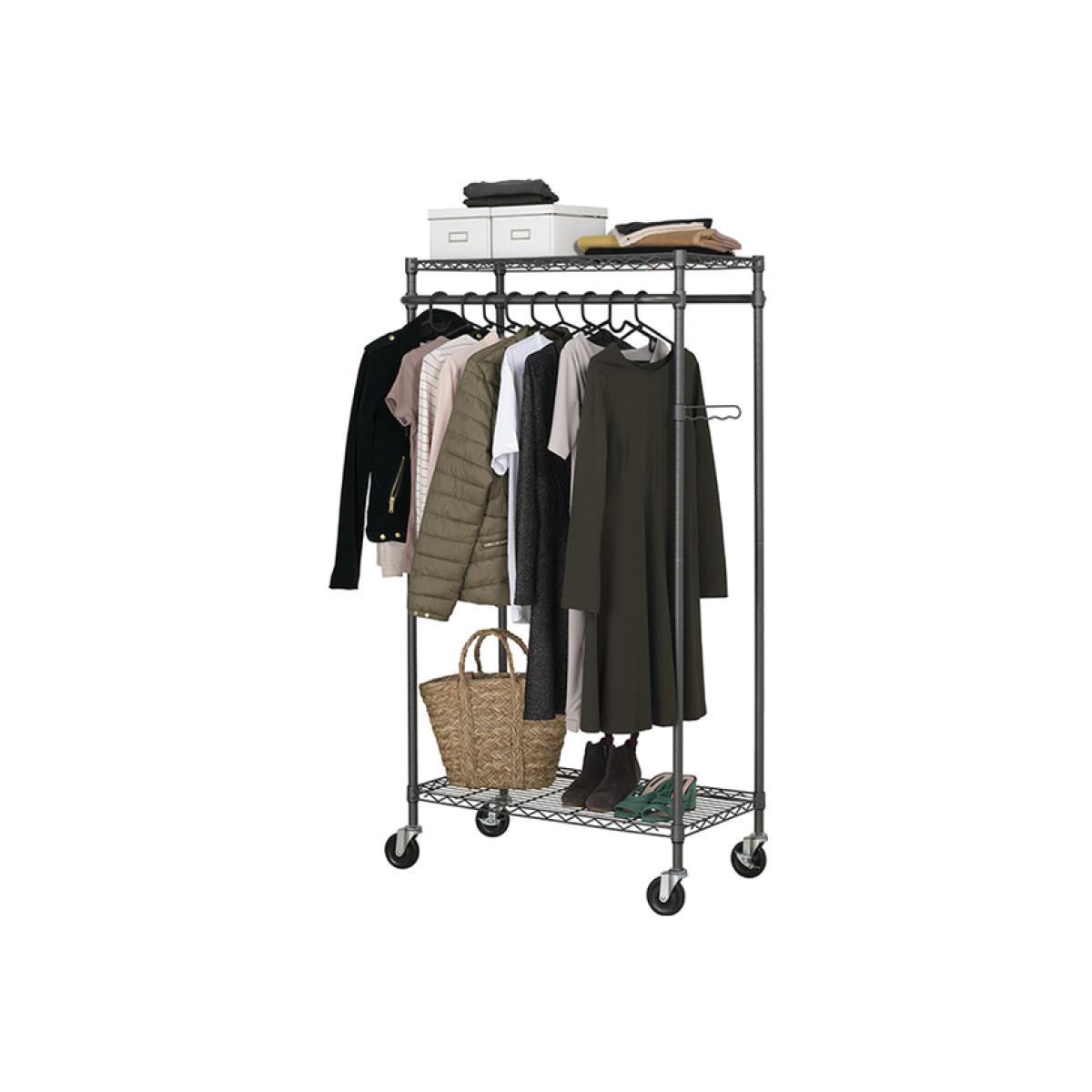 Metal Clothes Trolley Rail on Castor Wheels Grey Finish - Grey