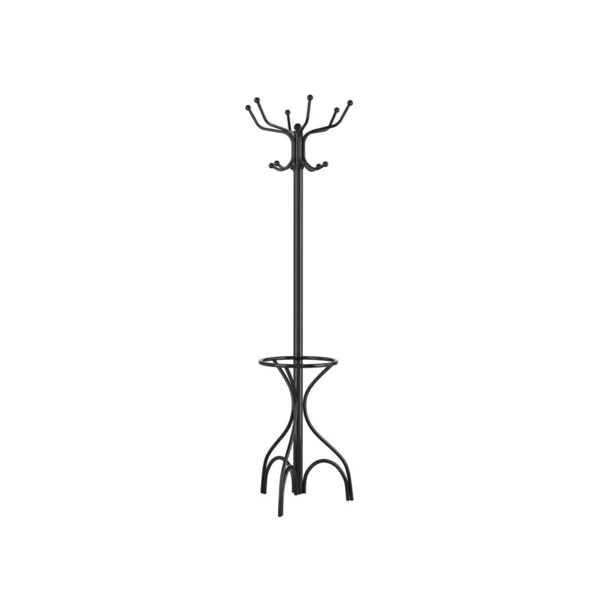 Finished in matte black metal, this hall stand combines timeless style with exceptional functionality. Features eight hooks for coats, scarves, hats, and bags, with a lined base for umbrellas and walking sticks. Compact design occupies less than a foot of floor space, ideal for narrow hallways or entryways. Holds up to 5kg on the top hooks and 7.5kg on the lower rack, ensuring reliability for daily use. Comes with straightforward instructions for quick and hassle-free setup.