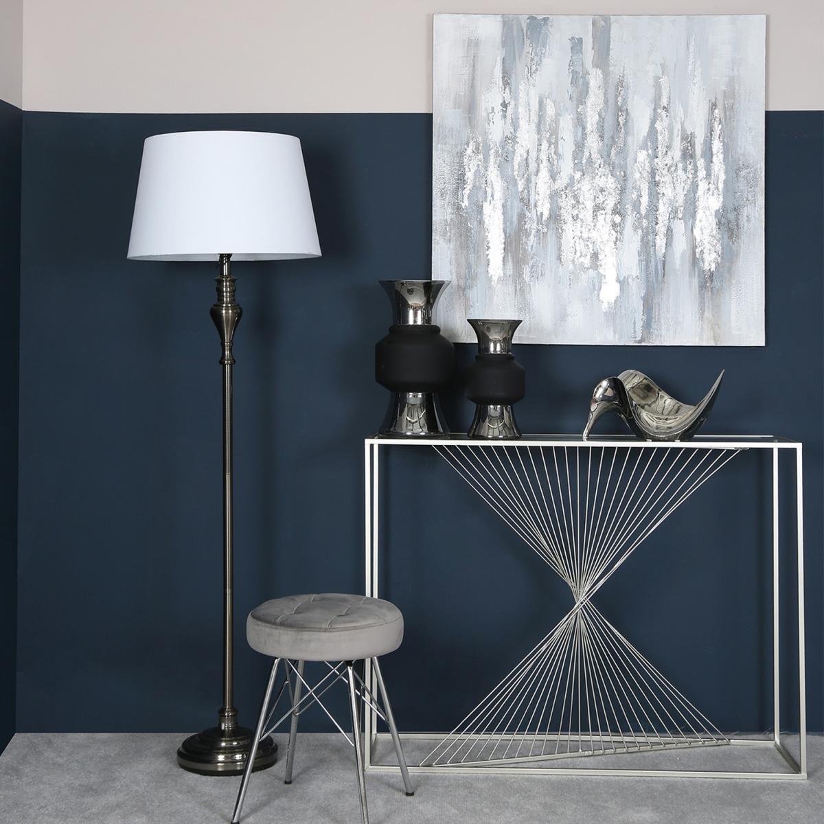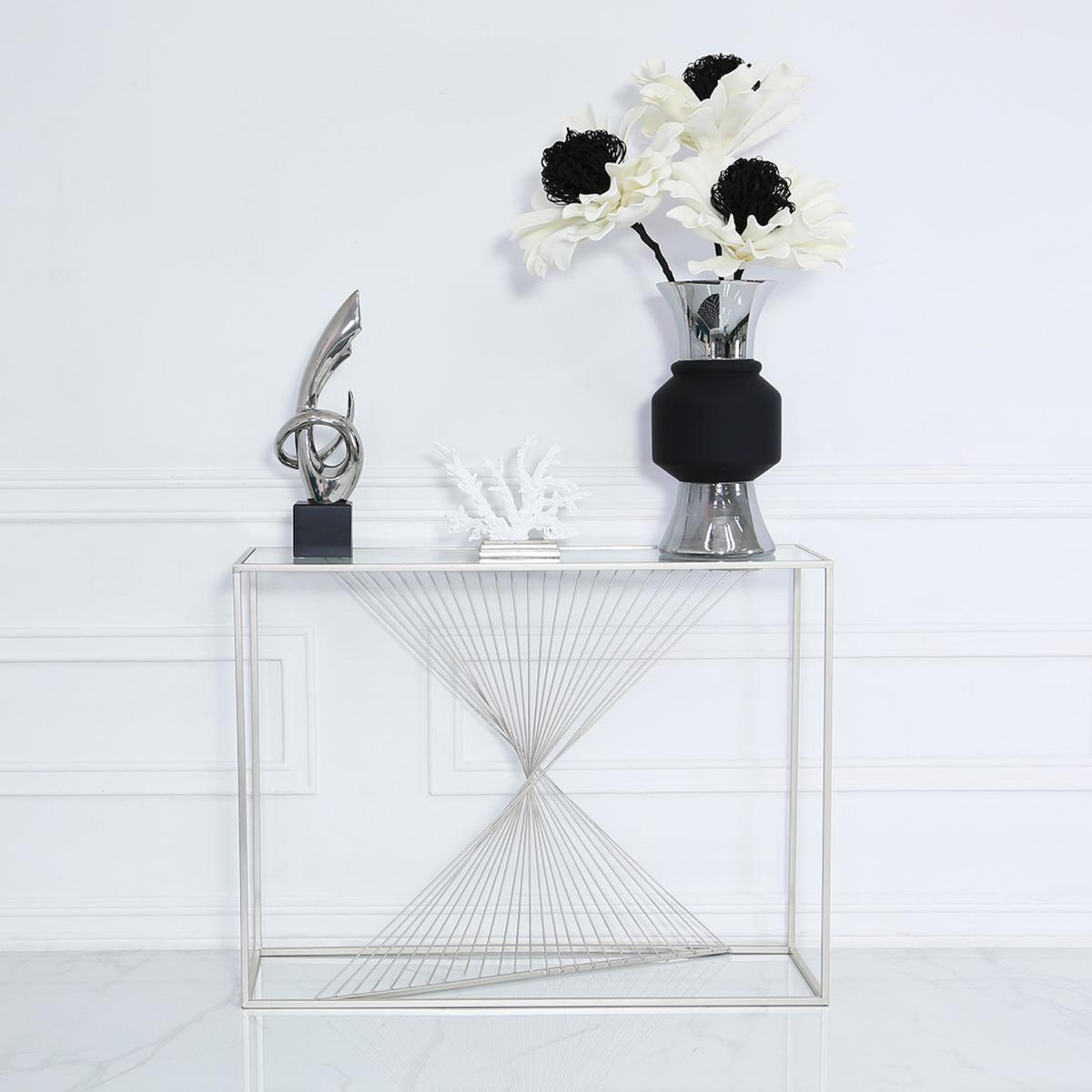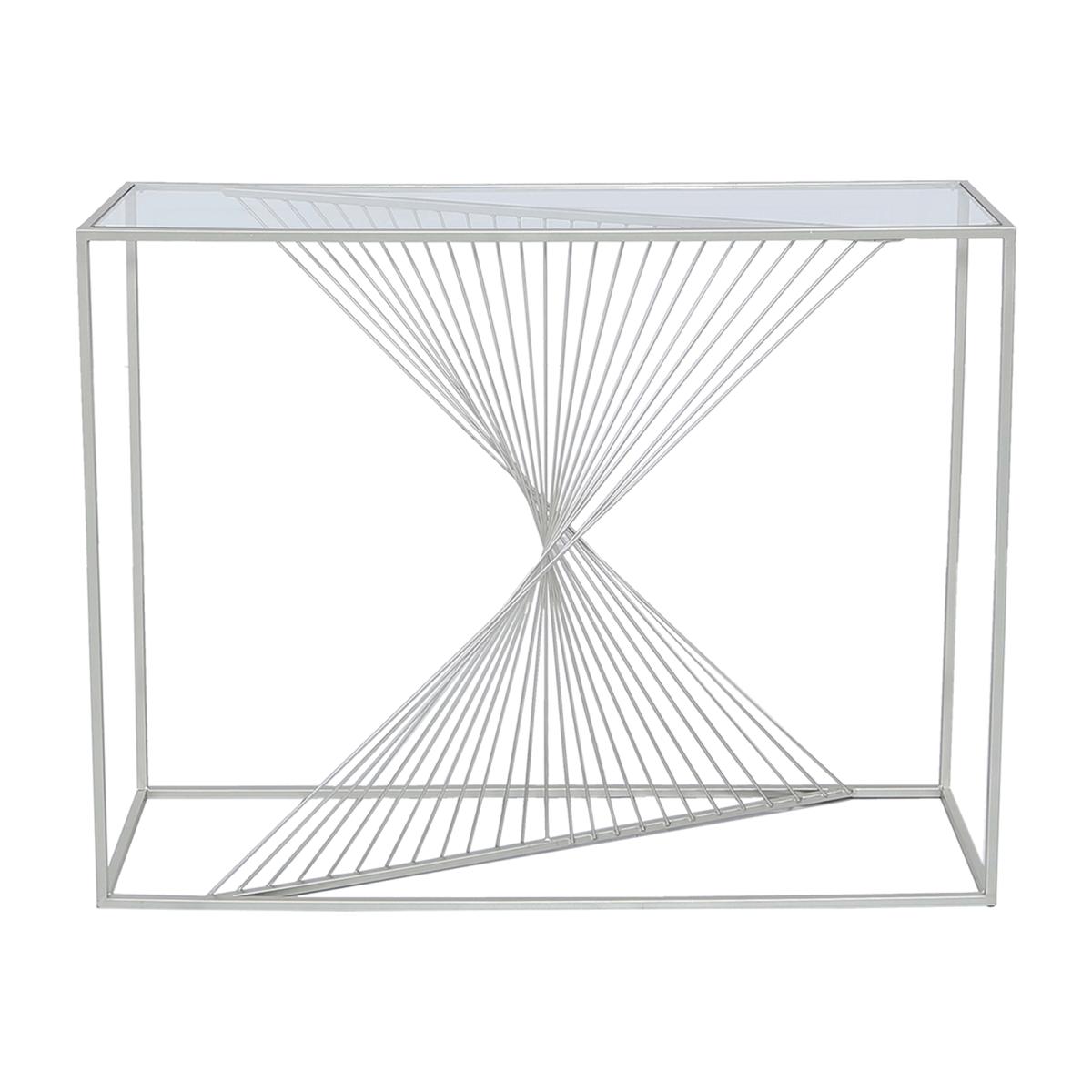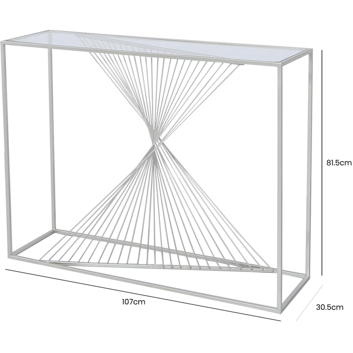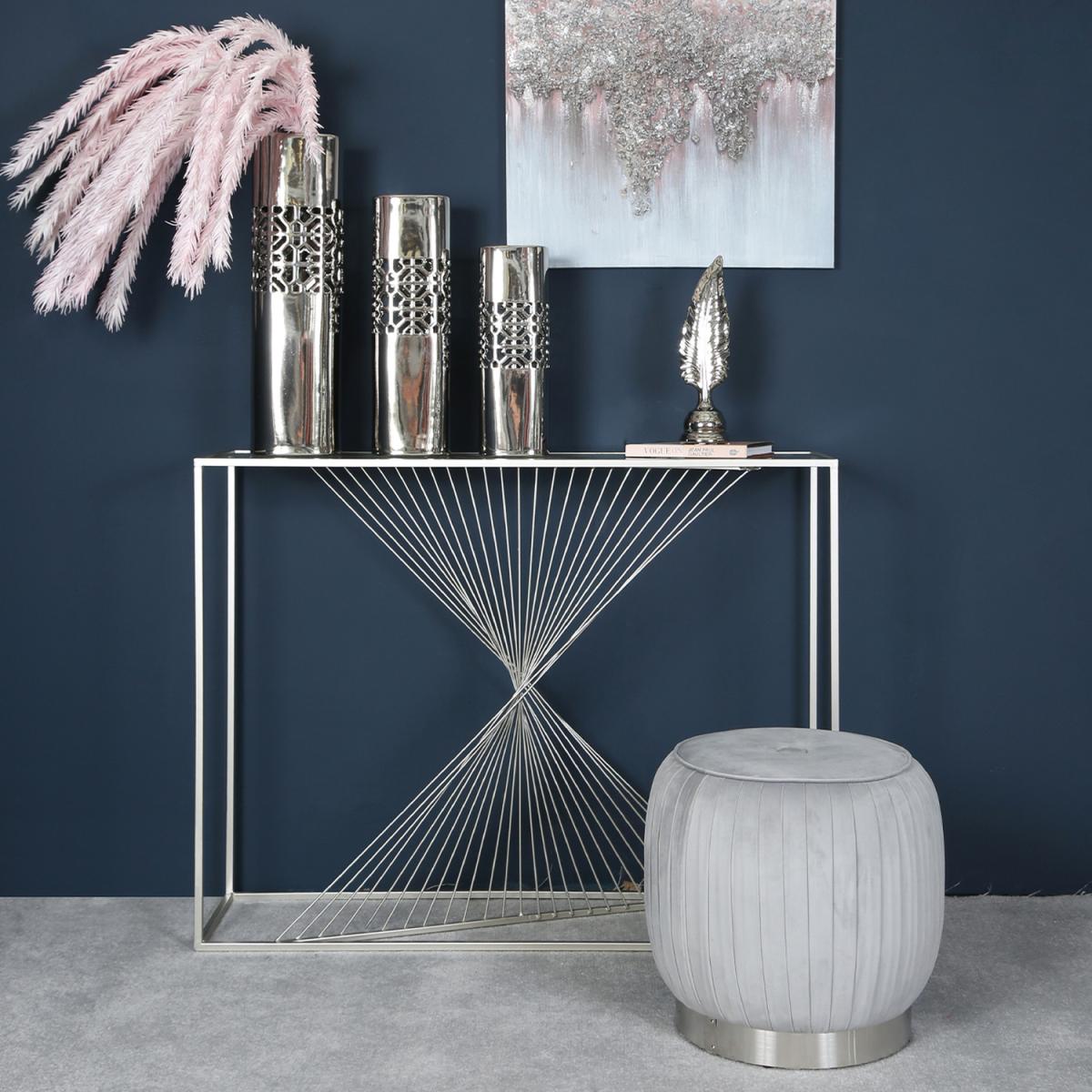 I really like this metallic console table for its sleek, modern look. The silver finish makes it versatile, suited to contemporary or industrial interiors, and it can also act as a striking statement piece in more minimalist spaces. Its open-wire design adds a touch of visual interest without feeling heavy, making it perfect for narrower hallways or entryways where space is at a premium. For styling, consider pairing it with a few decorative vases, a tray for keys, or small artwork to keep the surface functional yet stylish. Because of its airy structure, it works best with lighter decorative accents to maintain a balanced, uncluttered feel.