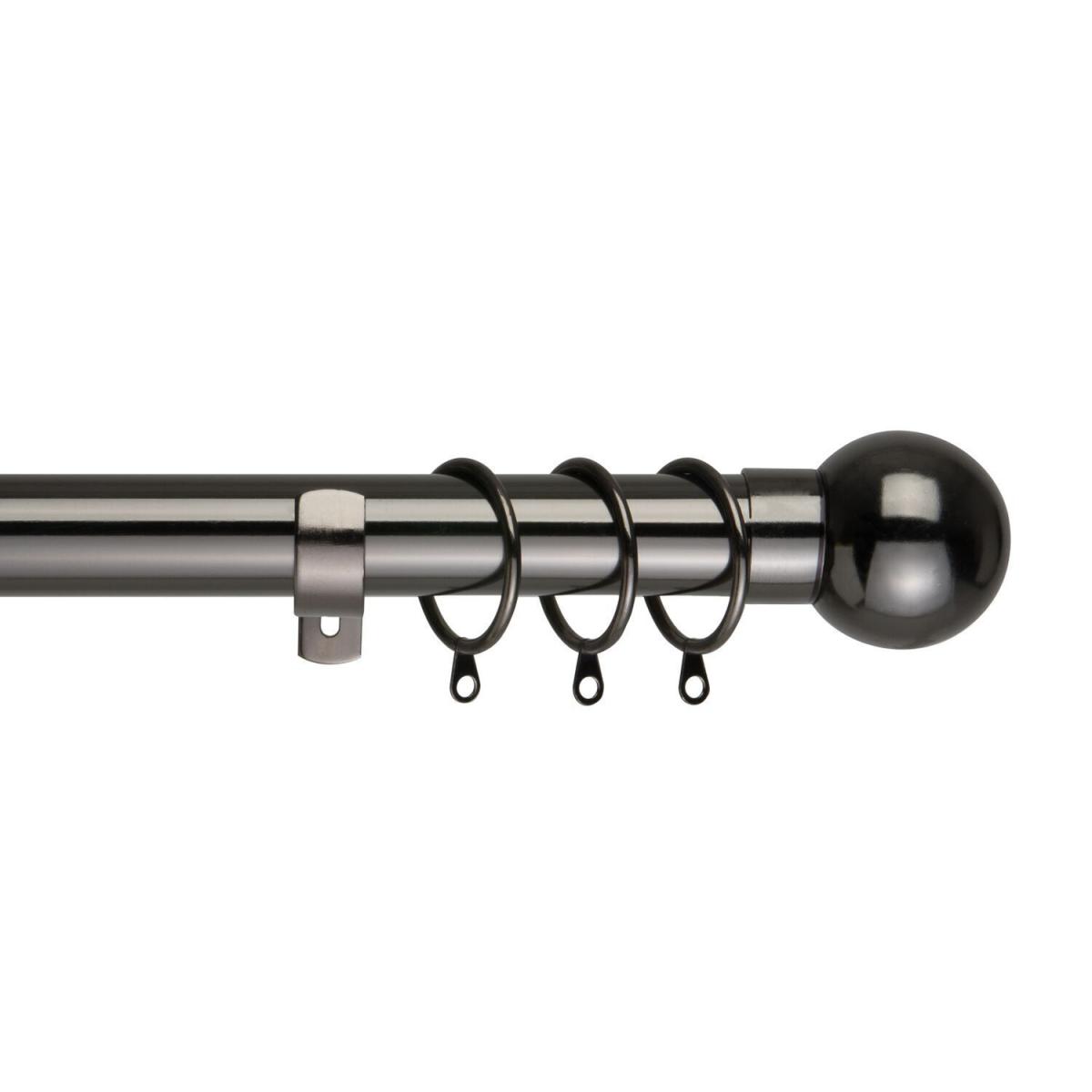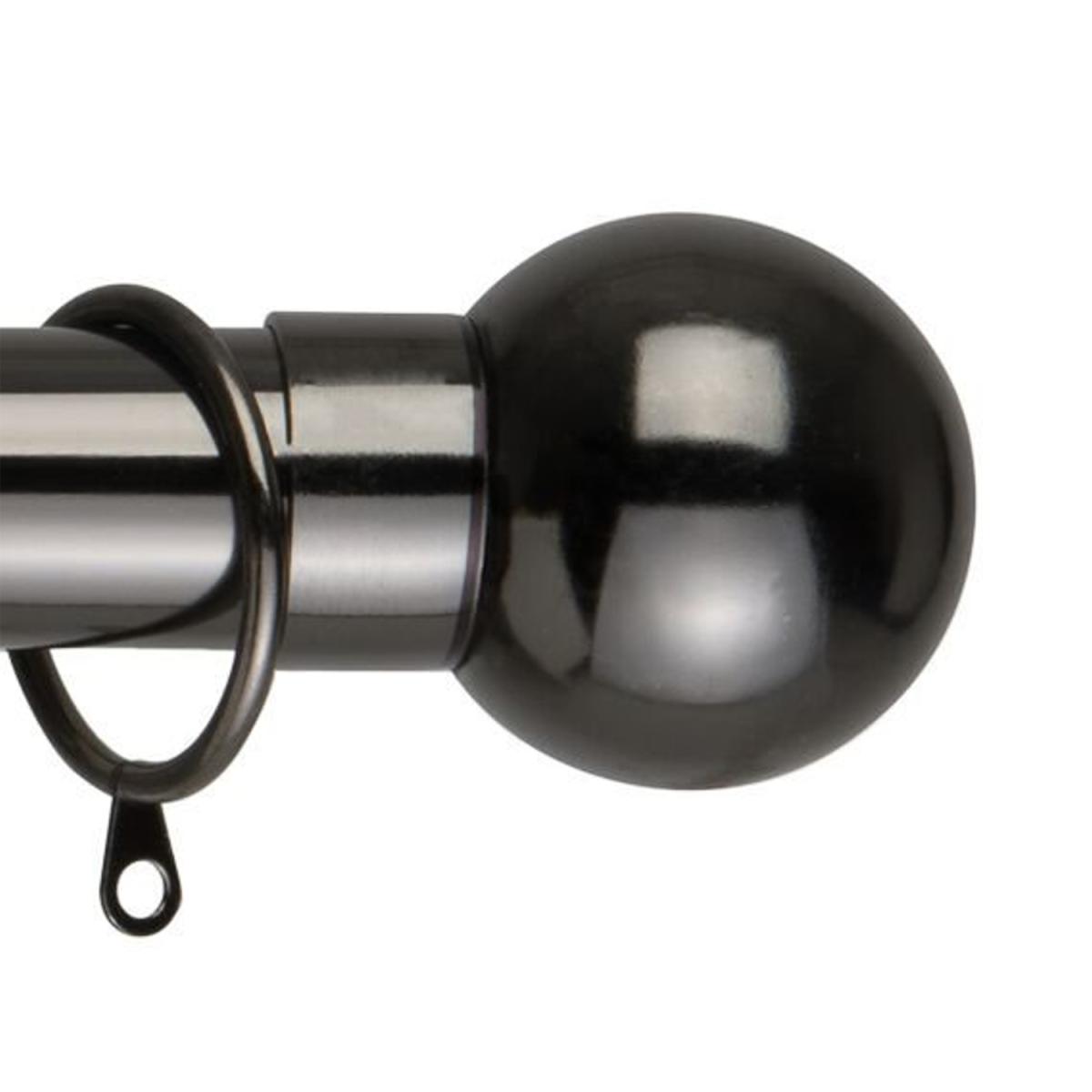 Metal Curtain Pole Extendable 28mm Round Finials - Black / 300cm
