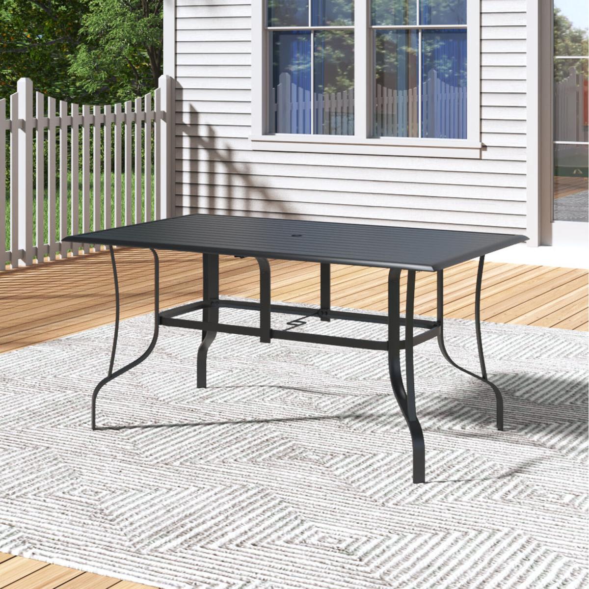 A sturdy table is key to creating a relaxing space for dining or unwinding. This metal table is exceptionally strong and durable, designed for long-term use. Its stable base enhances the table's overall sturdiness, while its sleek lines add a touch of elegance. The specially treated smooth surface makes cleaning and maintenance easy. With parasol holes in both the tabletop and base, you can effortlessly create a shaded outdoor spot. Versatile in use, this metal table is an excellent choice whether for dining or as a coffee table, and it works well both indoors and outdoors.