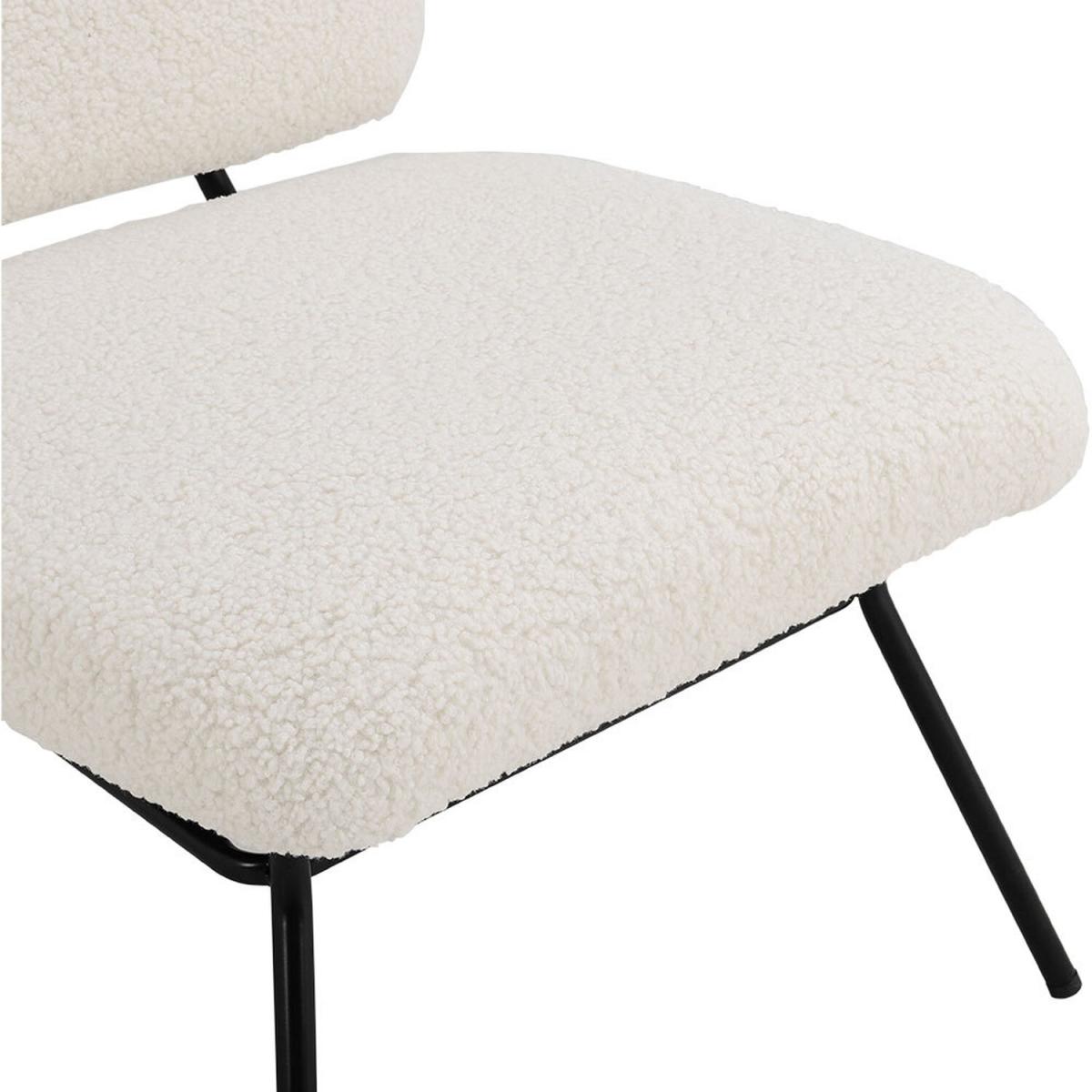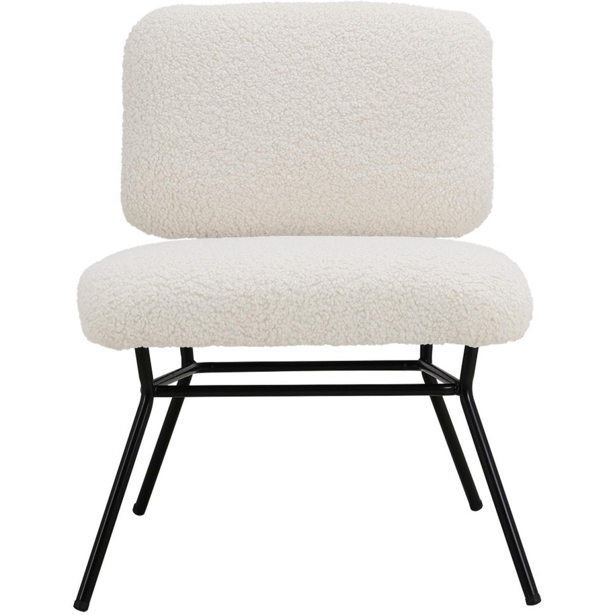 A different type of accent chair for people with more eclectic tastes that like the concept of white wool, this patchwork chair will suit a particular home perfectly. Crafted by Livingandhome, the chair features an inviting seat upholstered in soft faux wool, available in calming neutral tones. Paired with a sleek black metal frame, it's stylish and sturdy. Inspired by Nordic design, this chair adds a touch of elegance to any home. Designed with zero-noise and floor-protective rubber pads, it's perfect for the living room, dining room, bedroom, and more. Elevate your space with this comfortable and chic accent chair today!
