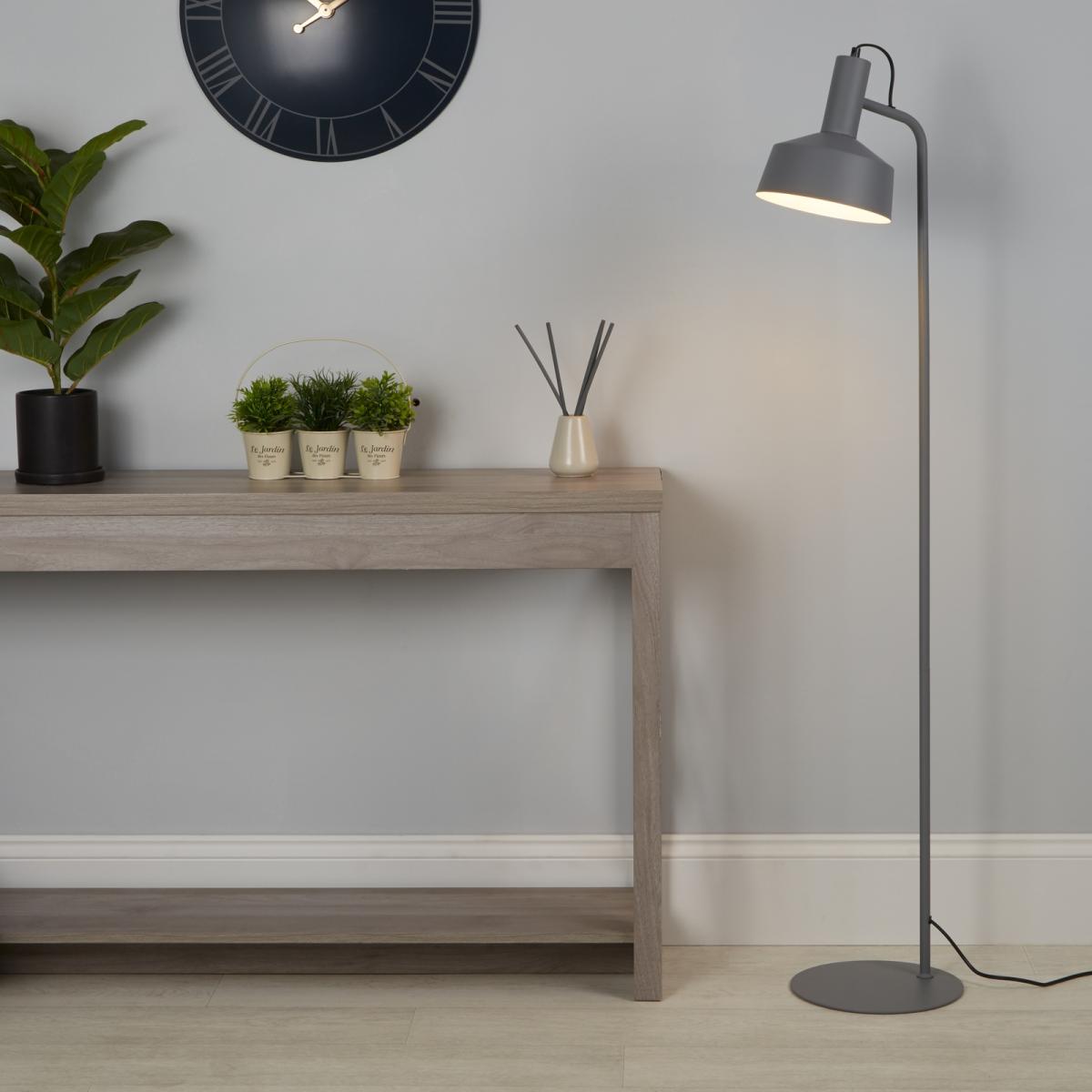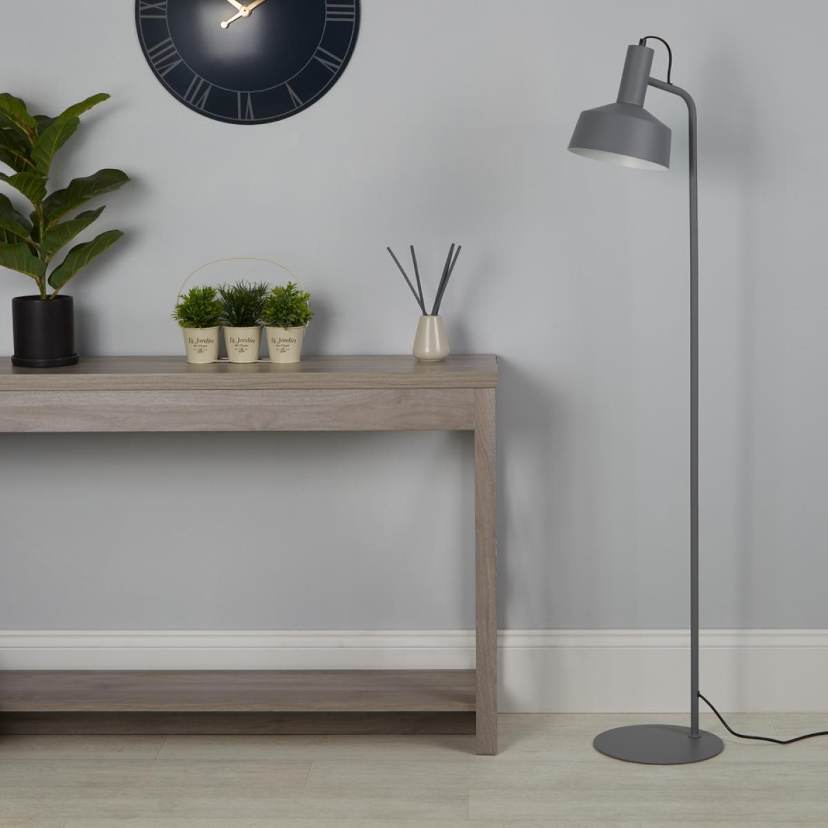 Minimal yet incredibly stylish, this grey metal floor lamp is ideal to illuminate a home office, living space or reading area. The pale grey colourway will work well with most interior design styles, creating an eye-catching floor lamp for any room. A practical floor lamp which will elevate the look of any room.