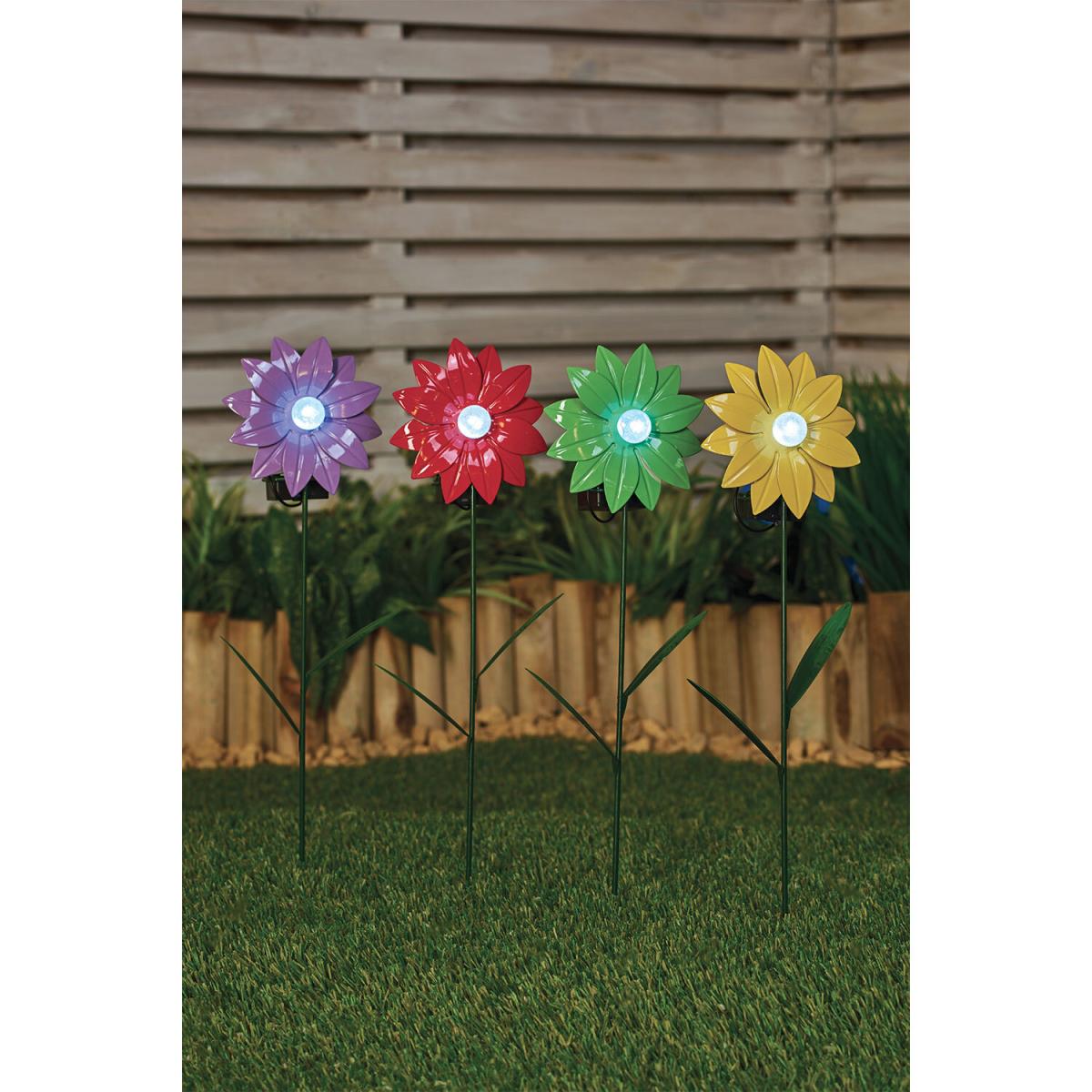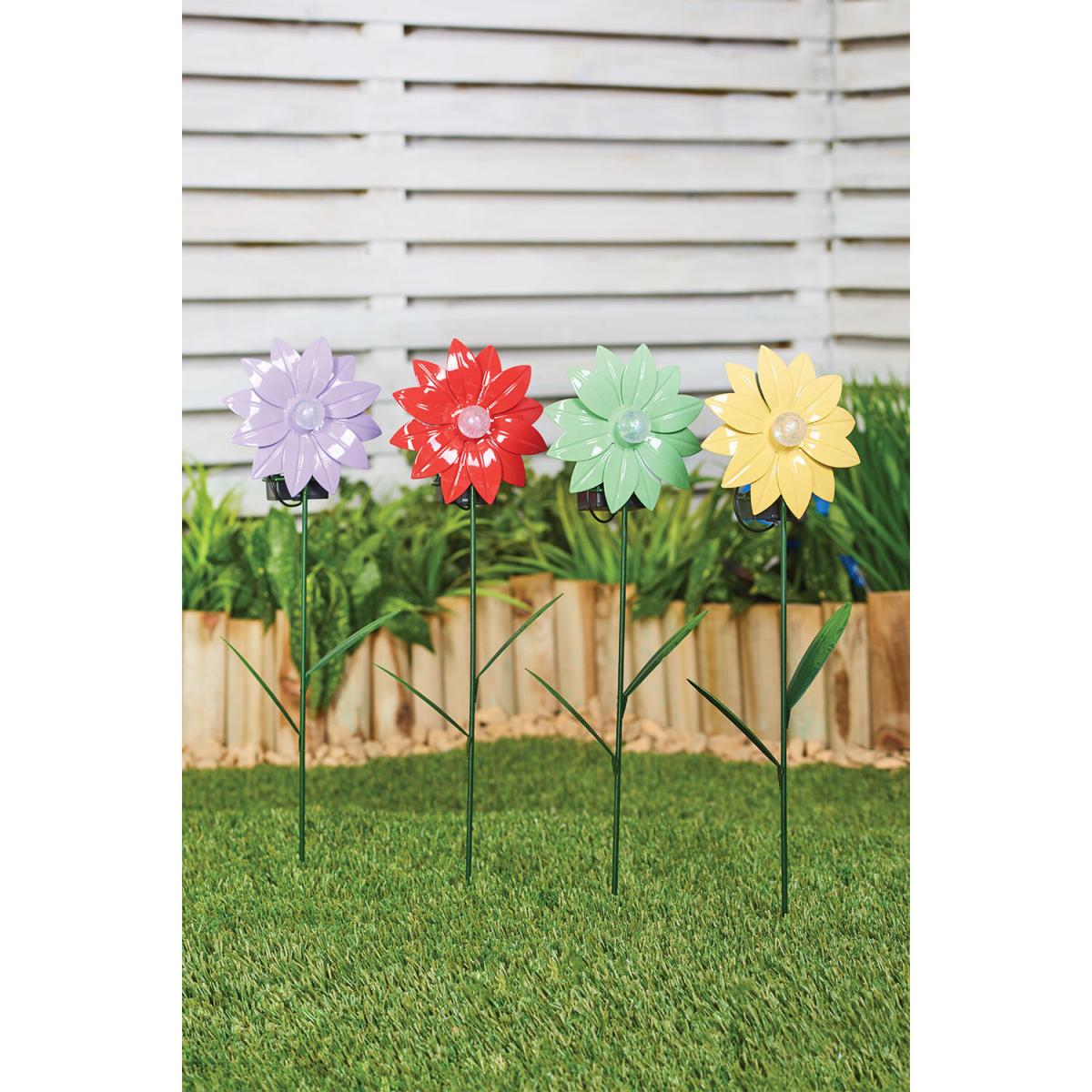 Give your garden a gorgeous glow with this attractive and colourful Metal Flower Solar Stake Light. Designed to look like a stunning flower with coordinating leaves, this stake light fits wonderfully in the ground around flowerbeds and doorsteps. Gaining its energy from the sun, this light will cast a lovely light on your outdoor space.