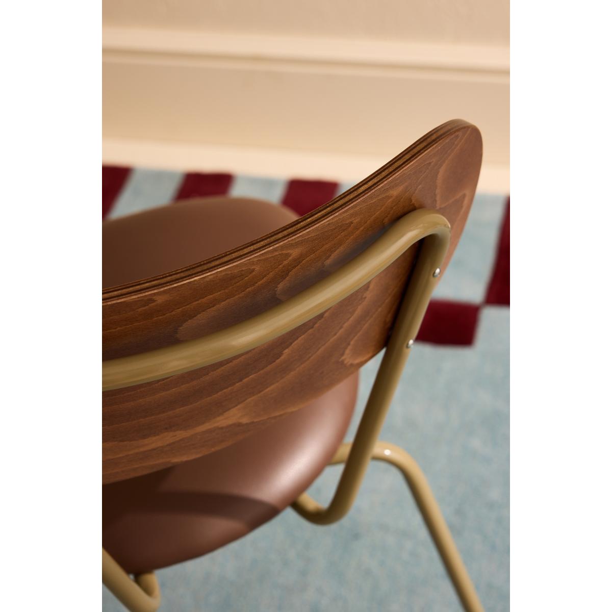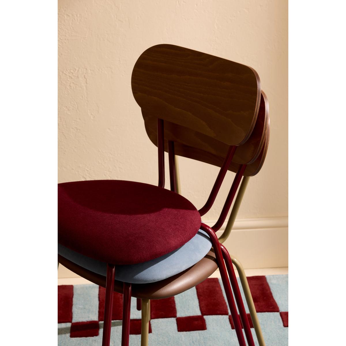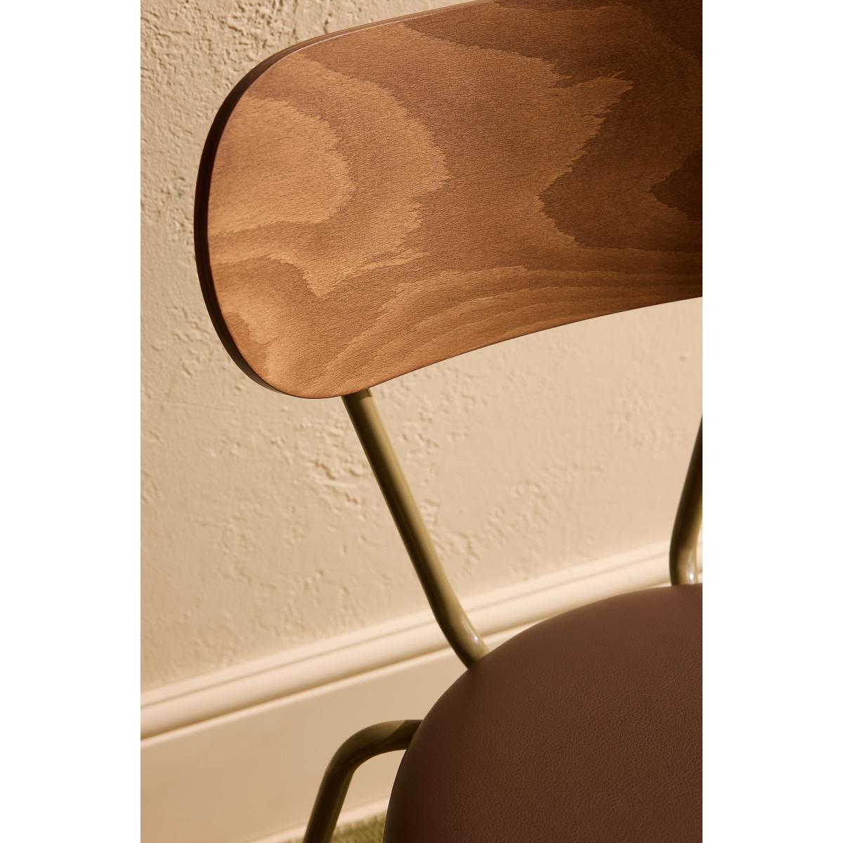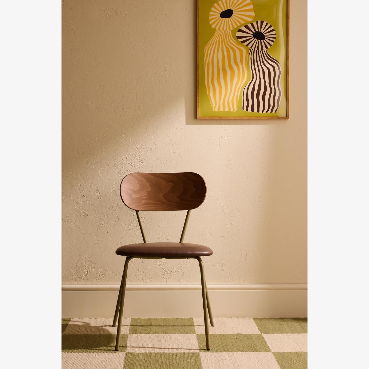 A perfect balance of strength and style, this dining chair features a sleek metal frame, a comfortably faux-leather upholstered seat, and a warm wood veneer backrest. Ideal for contemporary interiors, it offers durability without compromising on design - bringing elegance to any dining space. * Set of two dining chairs * Faux-leather seat * FSC Timber back * Powder coated steel frame * Designed in Britain * Handmade in Italy