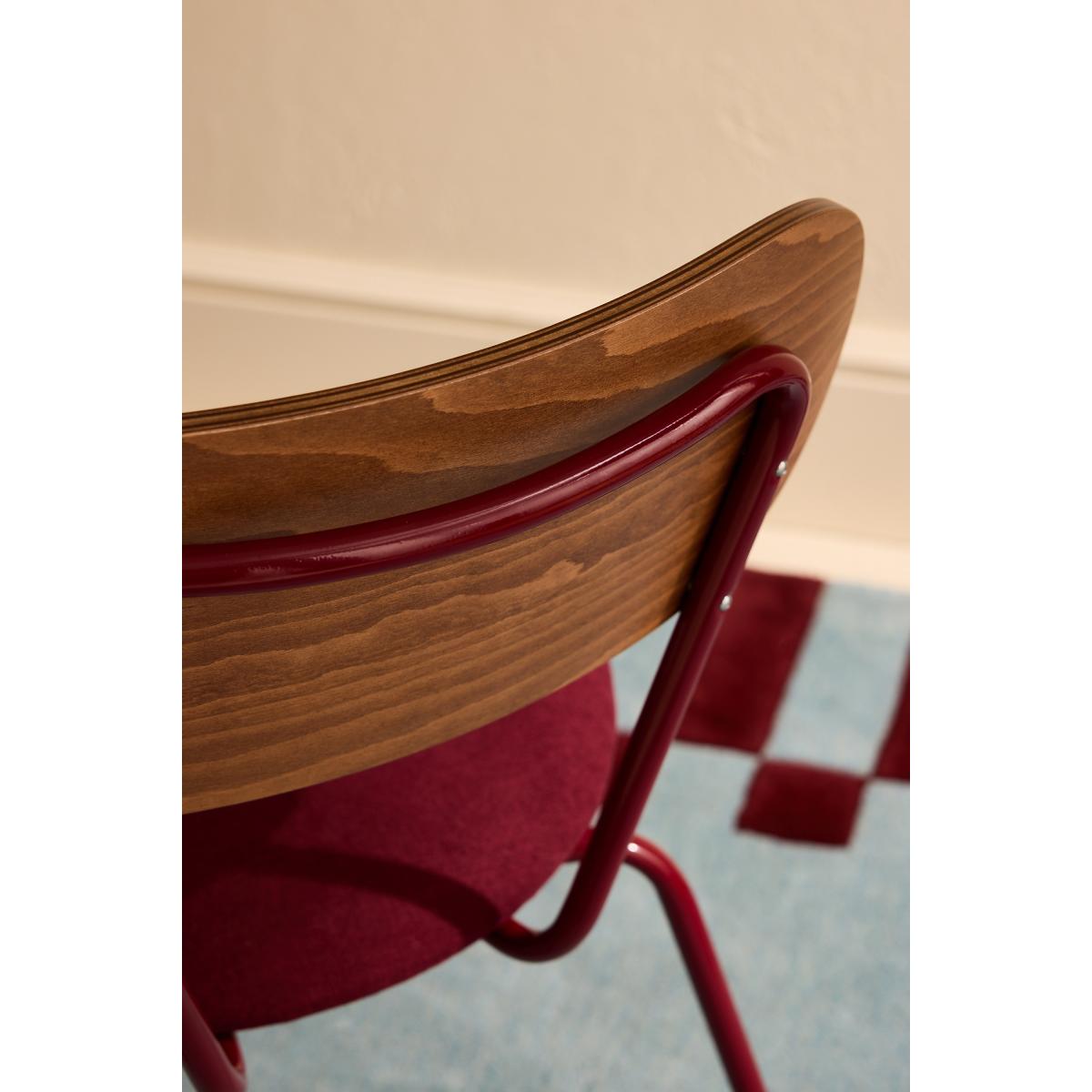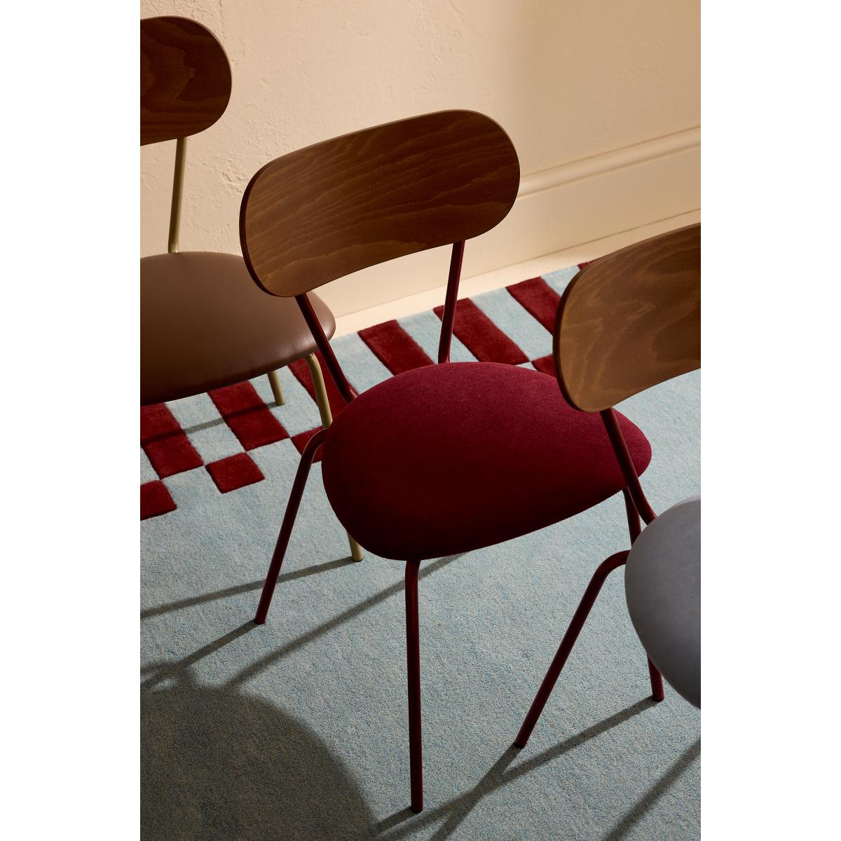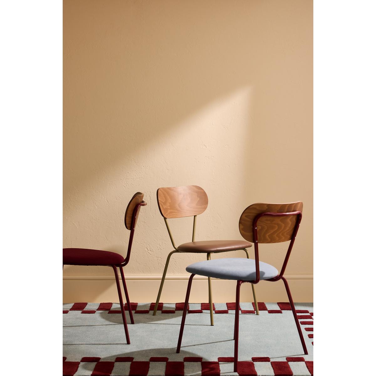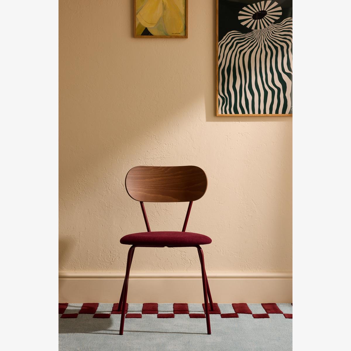 A perfect balance of strength and style, this dining chair features a sleek metal frame, a comfortably upholstered seat, and a warm wood veneer backrest. Ideal for contemporary interiors, it offers durability without compromising on design - bringing elegance to any dining space. * Set of two dining chairs * FSC Timber back and seat * Powder coated steel frame * Designed in Britain * Handmade in Italy