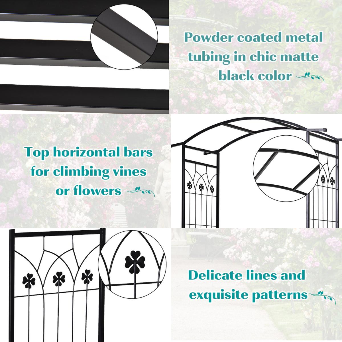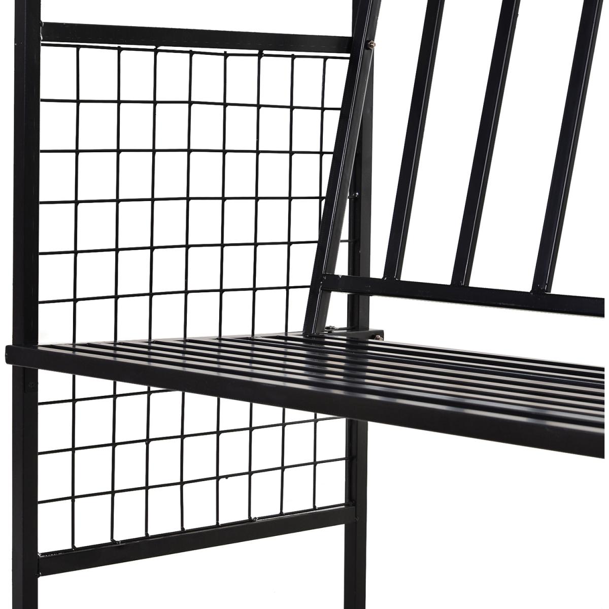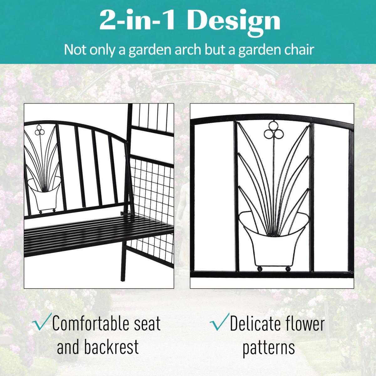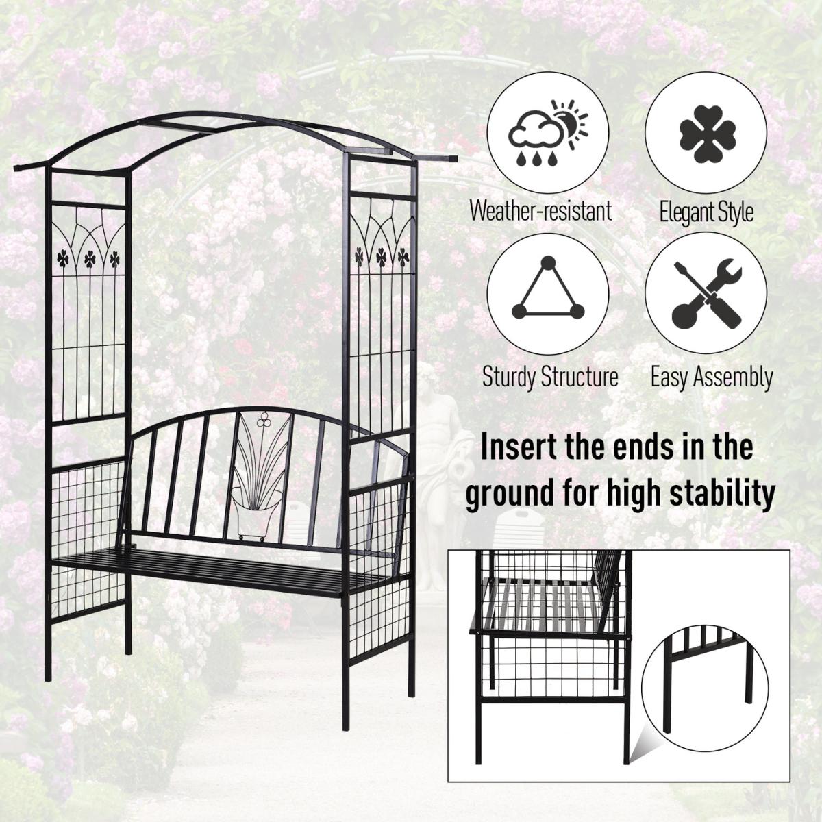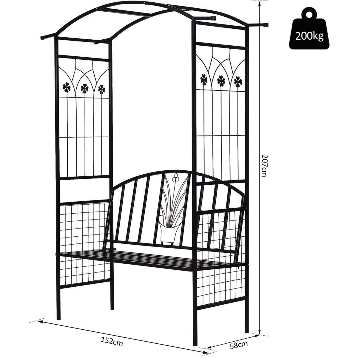 Create a charming outdoor spot you'll want to sit in all day long with this garden arch bench from Outsunny. A duo design, it consists of a two-seater bench and a garden abhor arch connected in one piece, where trellis' on both sides provide a place for vines and climbing plants to grow and place themselves around, as well as rails on the top which are ideal for hanging flowers and baskets for extra impact and beauty. Slatted all over, water and liquids will not build up on the bench to prolong its use and scrolling features on the back for an elegant finish. Made from metal with a powder coating, the frame is tough and durable, ensuring this piece is a mainstay in your garden for the foreseeable future, and one which will give you many years of joy.