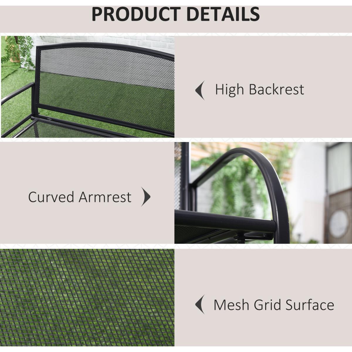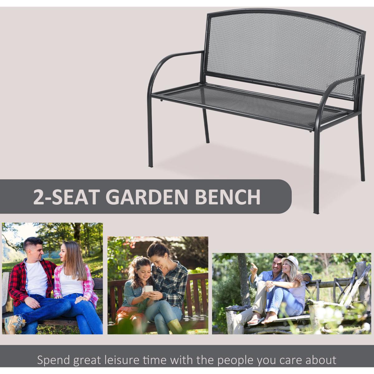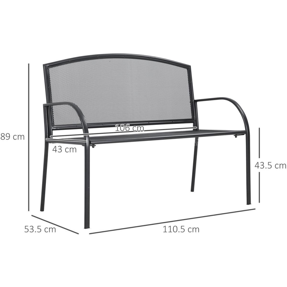 Metal Garden Bench, 2 Seater Outdoor Furniture Chair - Dark Grey
