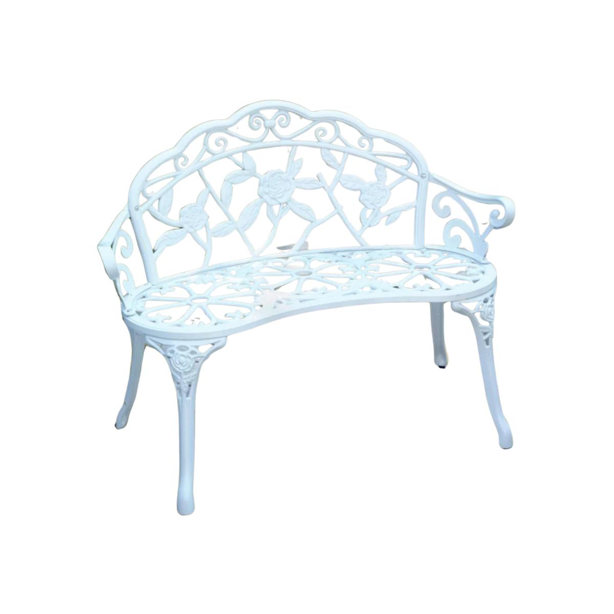 Crafted from durable aluminum and cast iron, this park bench offers a lightweight yet robust structure. The high-quality finish is both waterproof and weather-resistant, ensuring longevity and easy maintenance with a smooth, sleek surface. Designed to support up to 227 kg (500 lbs), this outdoor metal bench is sturdy enough for frequent use. The bench features a rounded, edge-free design to prevent injuries and a waterproof coating that ensures no color transfer to clothing. Engineered for optimal comfort, this bench includes gently curved armrests for relaxed posture and slant legs that evenly distribute weight. The ergonomic design guarantees a comfortable seating experience. Featuring a floral rose pattern on the backrest, this garden bench exudes elegance and tranquility. The rose petal-inspired backrest design creates a cozy, embracing feel, enhancing the bench's charm. Ideal for various outdoor settings, this rust and water-resistant bench is perfect for backyards, parks, gardens, and outdoor cafes. Its sturdy construction and antique style make it a beautiful addition to any outdoor space.