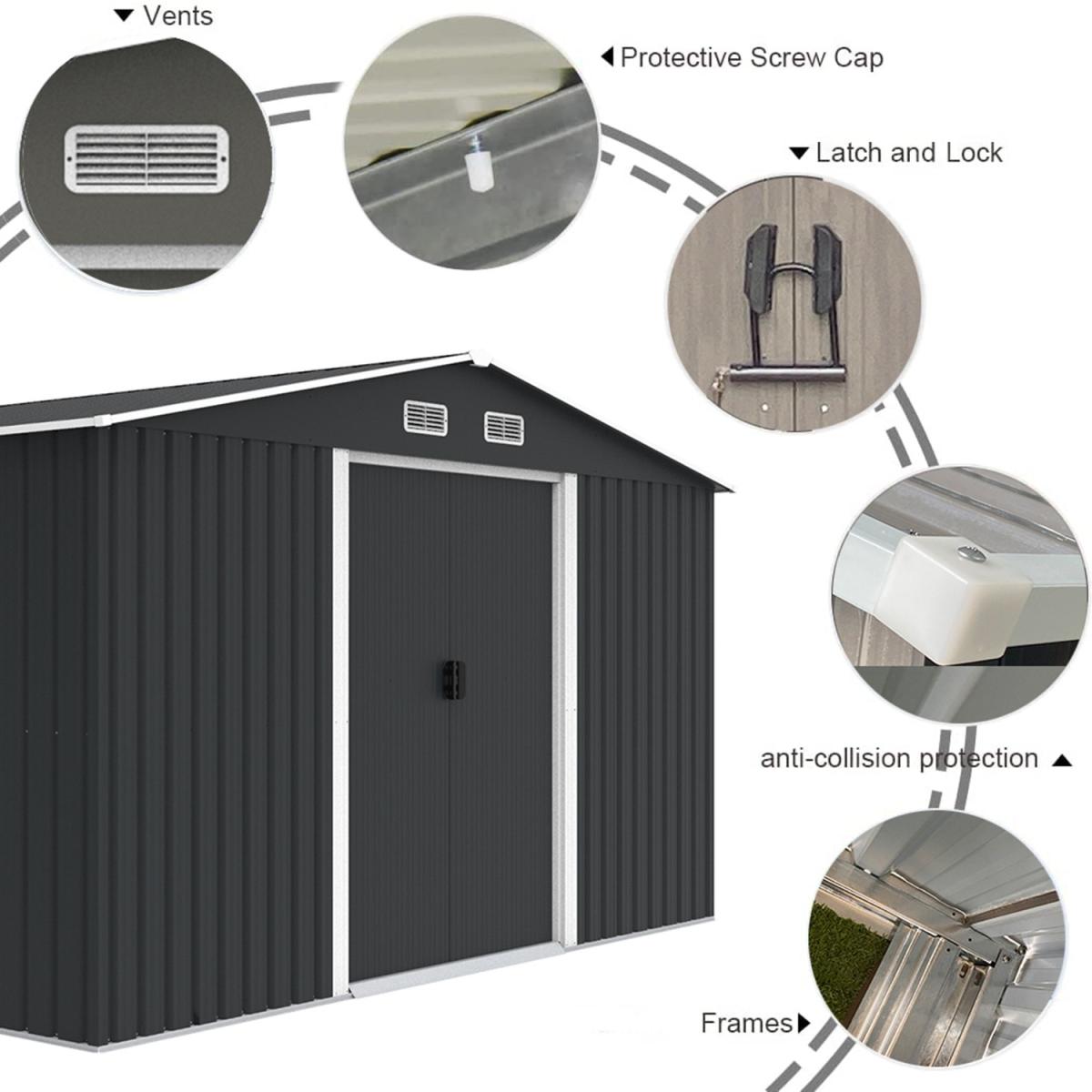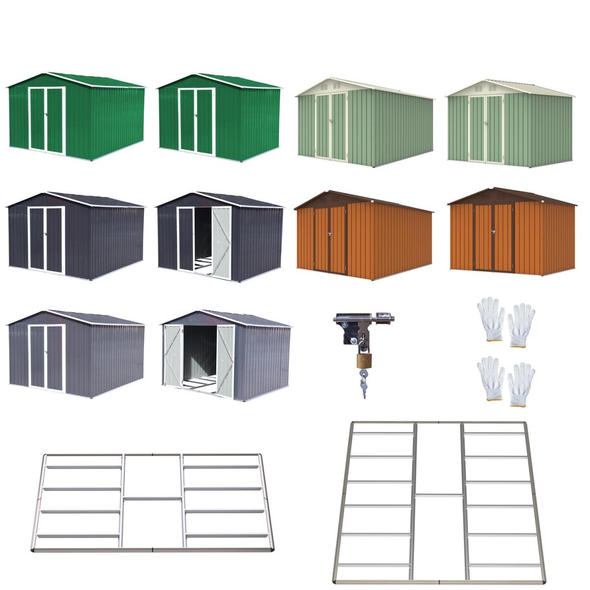 This metal shed provides a strong secure storage solution at a very favourable price. Produced in a double-baked-on enamel finish for durability. The shed has 2 doors which have deep runners entry ramp for opening and closing. Assemble, normally takes 2 people with DIY capability, gloves must be worn during assembly. Come with a metal foundation and 2 pairs of protective gloves.