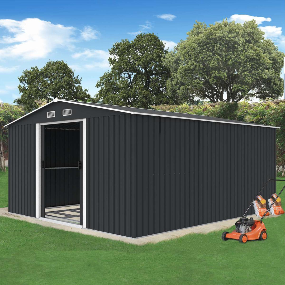 Metal Garden Shed With Free Foundation - Anthracite & White / 13ft X 11ft