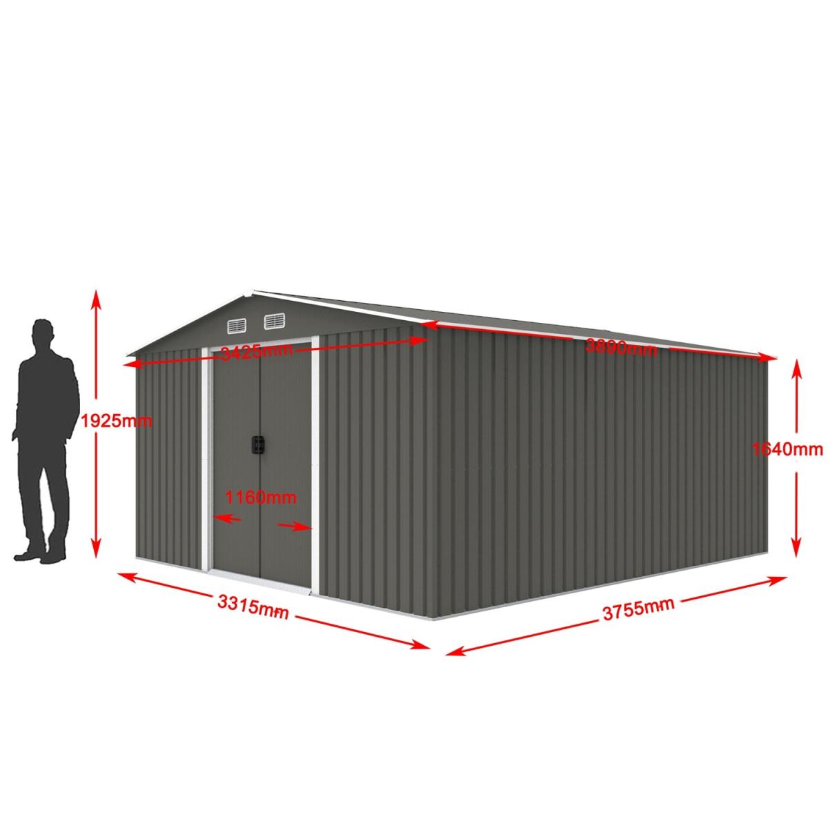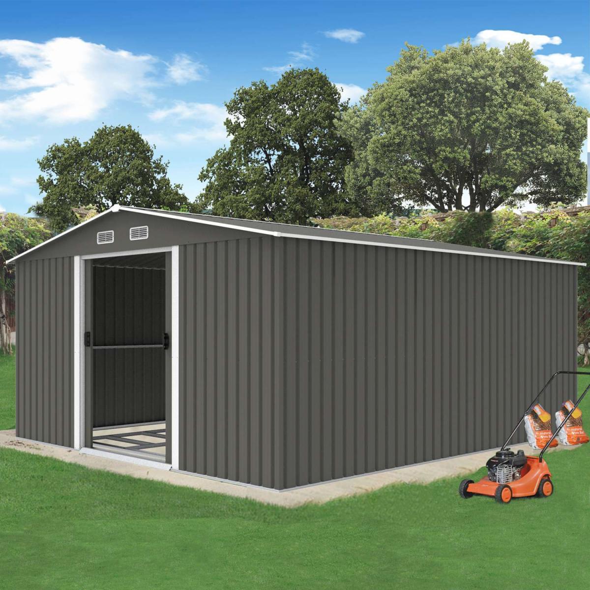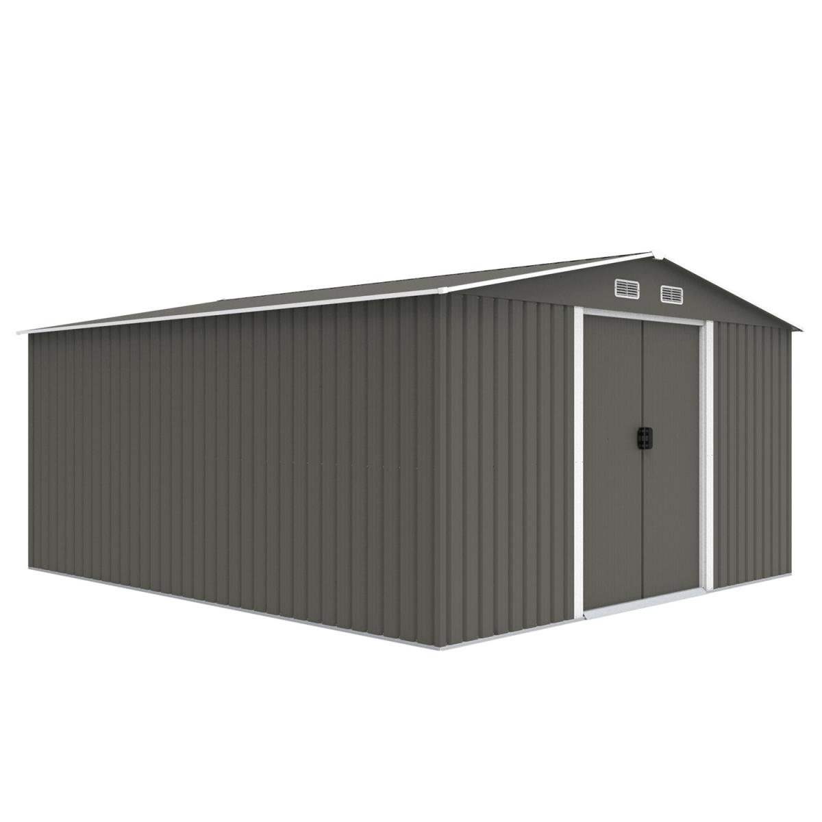 Metal Garden Shed With Free Foundation - Grey White / 13ft X 11ft