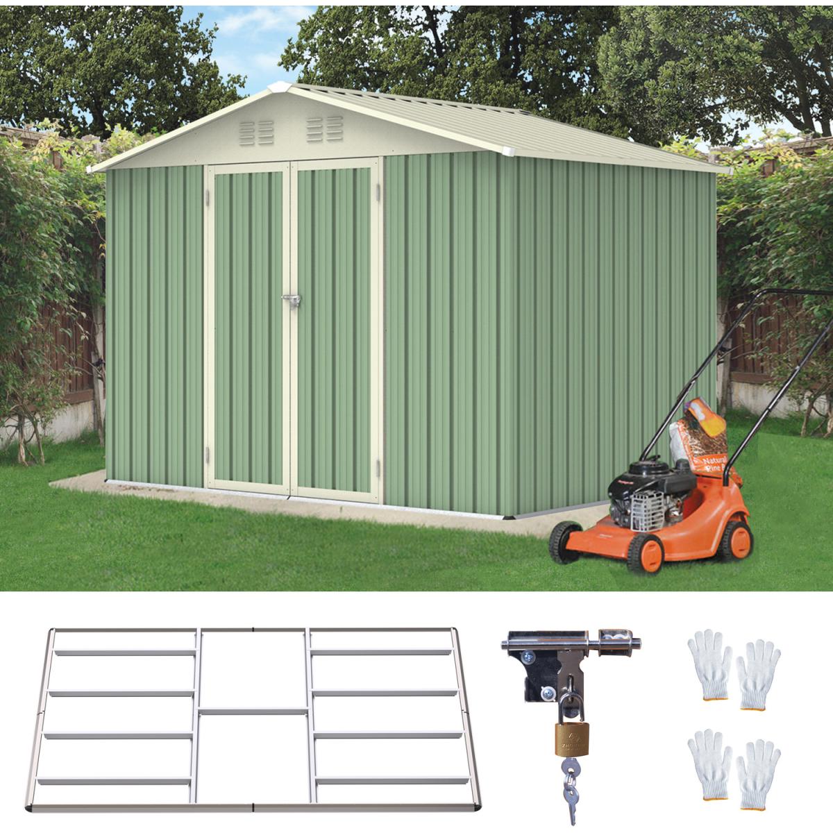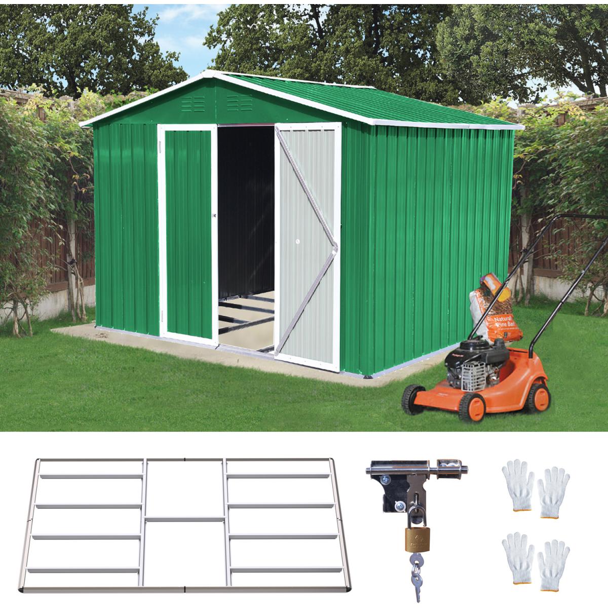 This metal shed provides a strong secure storage solution at a very favourable price. Produced in a double-baked-on enamel finish for durability. The shed has 2 doors which have deep runners entry ramp for opening and closing. Assemble, normally takes 2 people with DIY capability, gloves must be worn during assembly. Come with a metal foundation and 2 pairs of protective gloves.