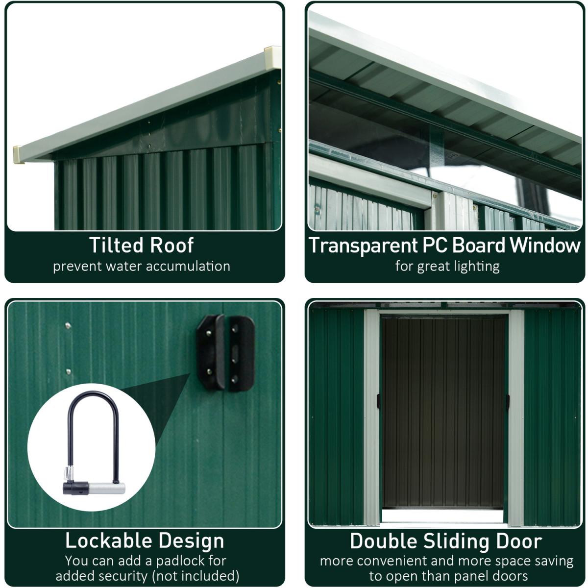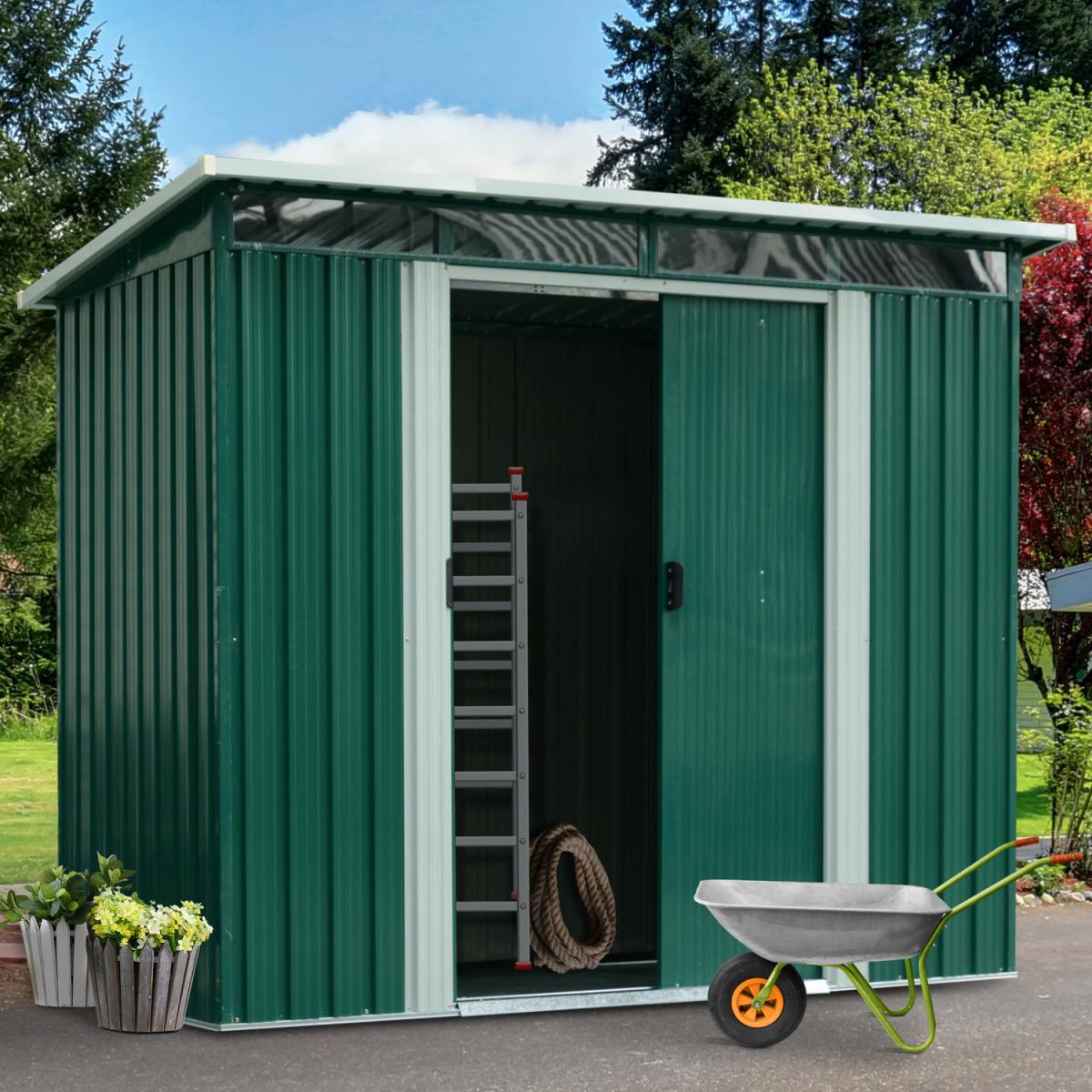This Garden Shed from Outsunny is a stylish way to keep your garden and outdoors tidy and organized. For every season there are various garden tools that must be stored properly. Our tool shed helps you maintain order, whether for tools, gloves, rubber boots, hoses or the like. Made from sturdy and durable colour-coated steel-plate and Polypropylene components, it has a protective film on metal panels for long term use, and also vents for airflow. The whole structure is painted to blend in with surroundings and can be used as a storage solution or as a work shed.