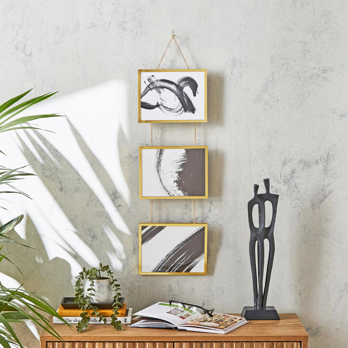 I love this gold hanging photo frame for adding a touch of sophistication to various interiors. Its metallic finish works particularly well in contemporary, minimalist, or glam-inspired schemes, providing a chic contrast against more subdued walls. When styling with this frame, consider pairing it with black and white photographs or artwork to highlight the gold detail, and hang it at eye level to create an inviting focal point. Practical tips include grouping multiple frames for a gallery wall or using it to showcase special mementos in living rooms and hallways, where the chain adds an elegant element of movement and visual interest. Overall, this piece is versatile and lends itself to both understated and statement displays.