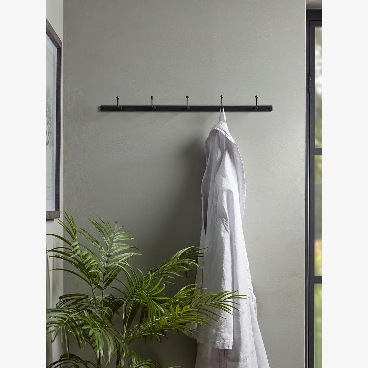 In a simple design, this small hook rack with five hooks suits an industrial style. The striking black metal complements the sleek design, adding modern appeal. Perfect for placing in your hallway for hanging coats and bags. Also available in small and medium.