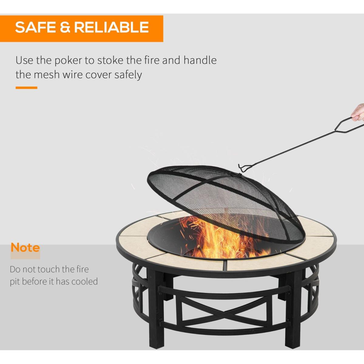 Bring warmth after hours and a delicious cooking spot with this Outsunny duo-use fire pit. The fire bowl allows room for charcoal, with removable cooking grate to grill food to perfection. Dome shaped mesh lid protects sparks flying out, with included poker to safely move wooden logs. The outdoors fireplace is made from metal, it's suitable for extended use. Keep fed in the day - keep warm at night: what more do you want?